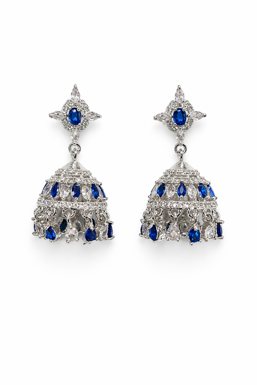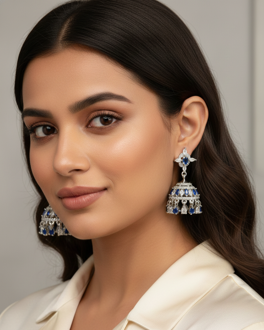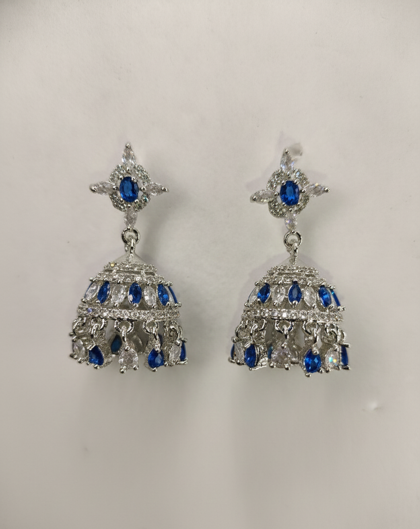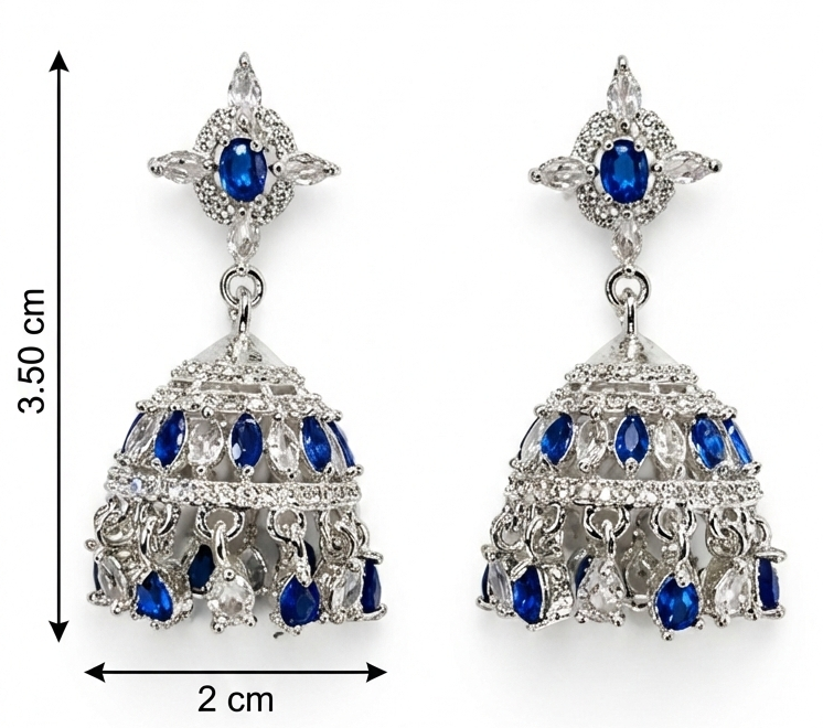 | Item Name | Luxury Sapphire Blue & American Diamond Modern Jhumka Earrings |