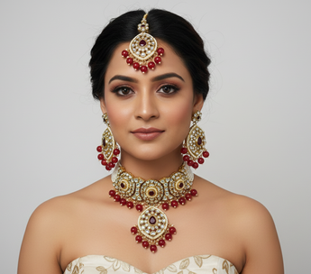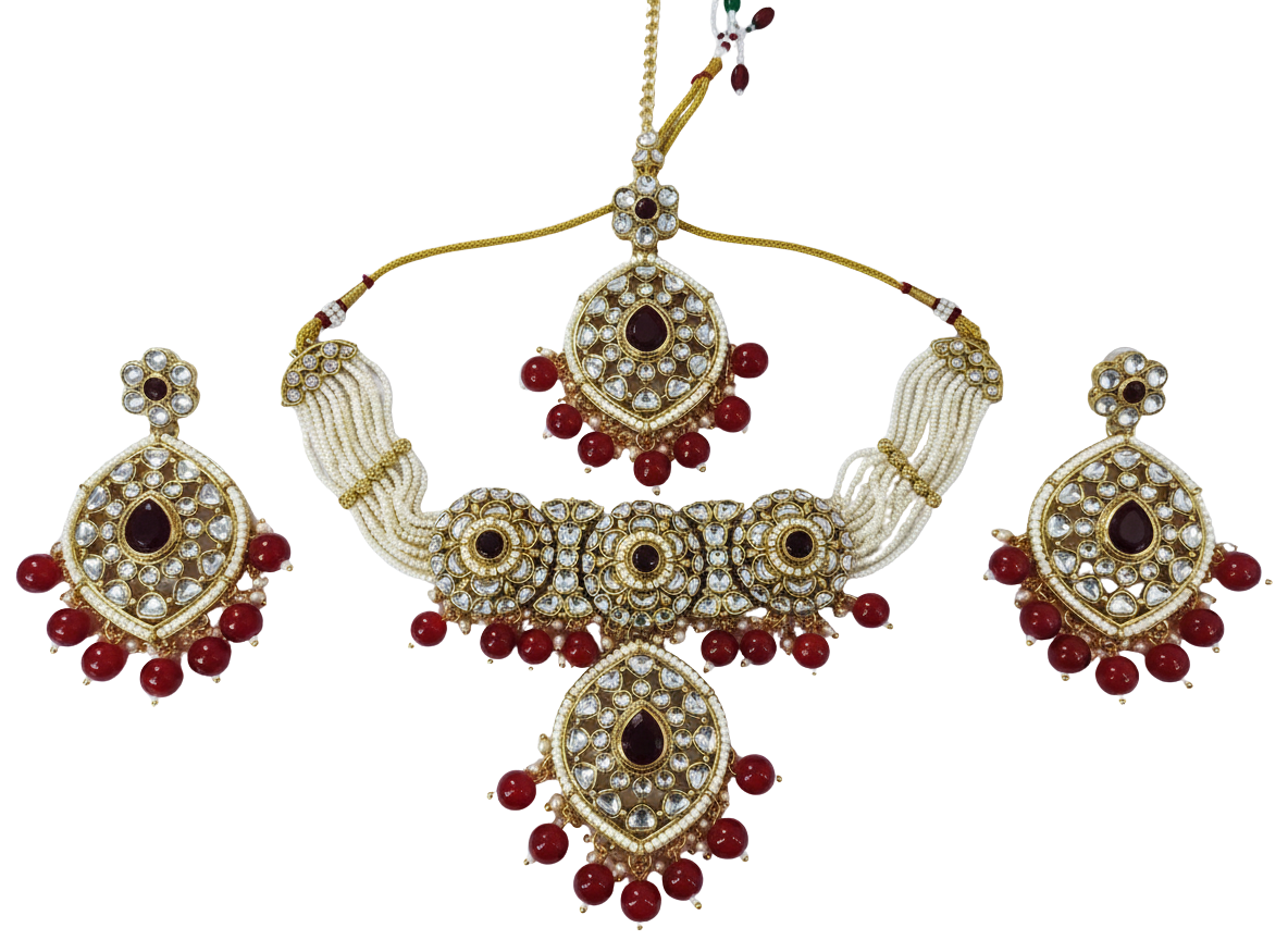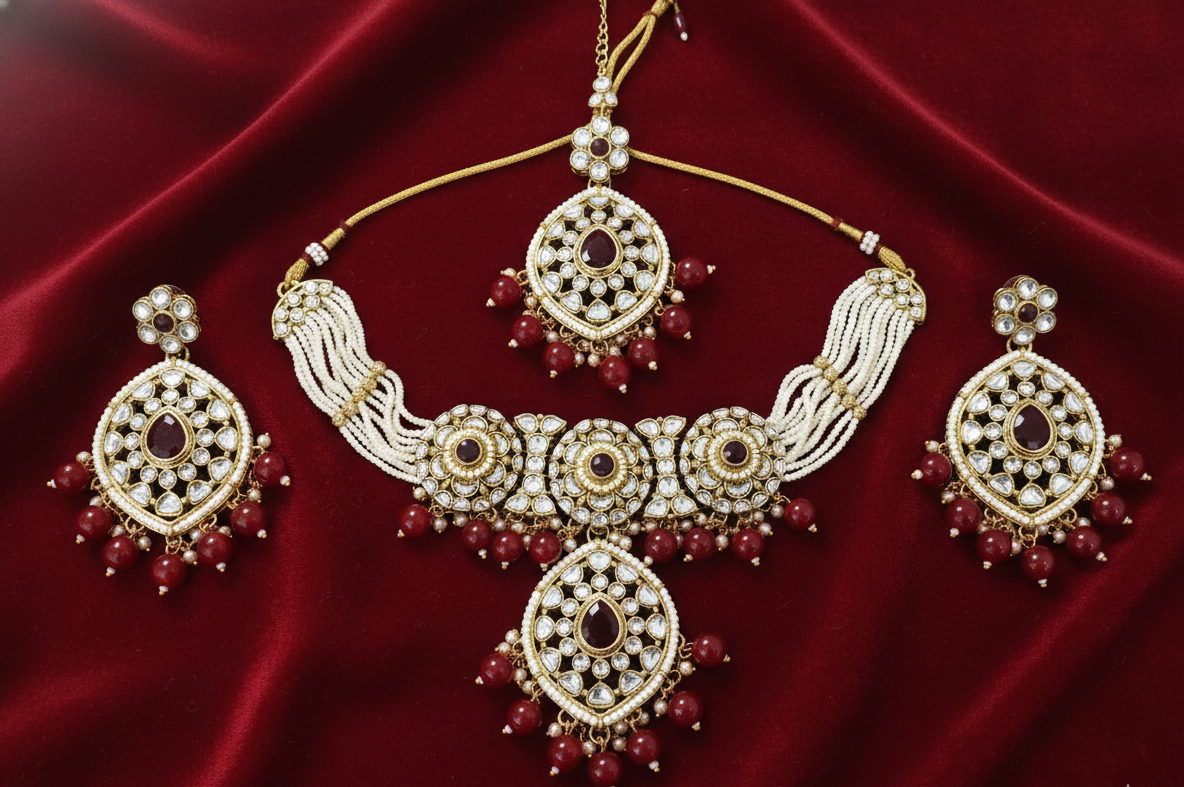 | Item Name | Luxury Maroon Red Kundan & Pearl Choker Necklace Set with Earrings & Maang Tikka |
