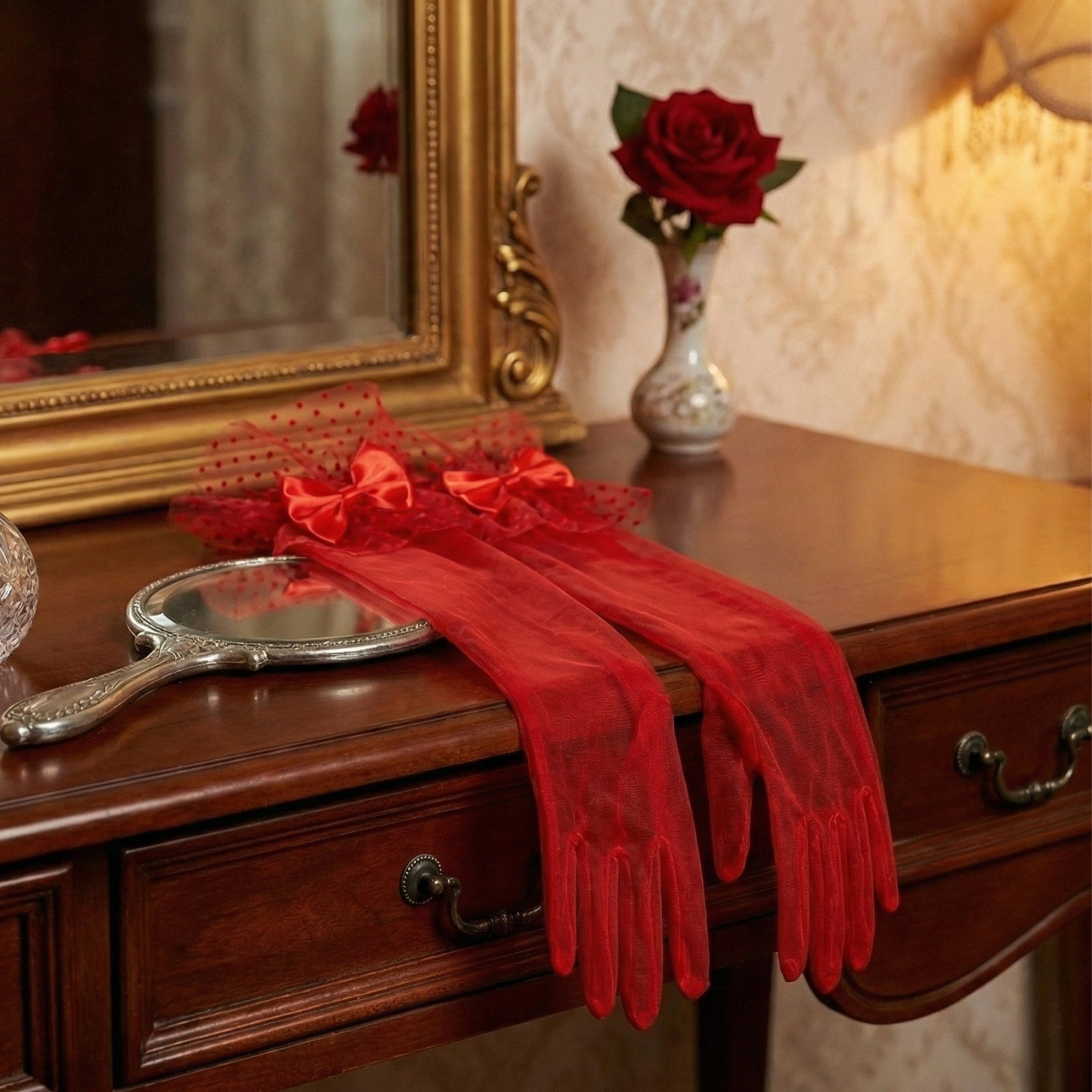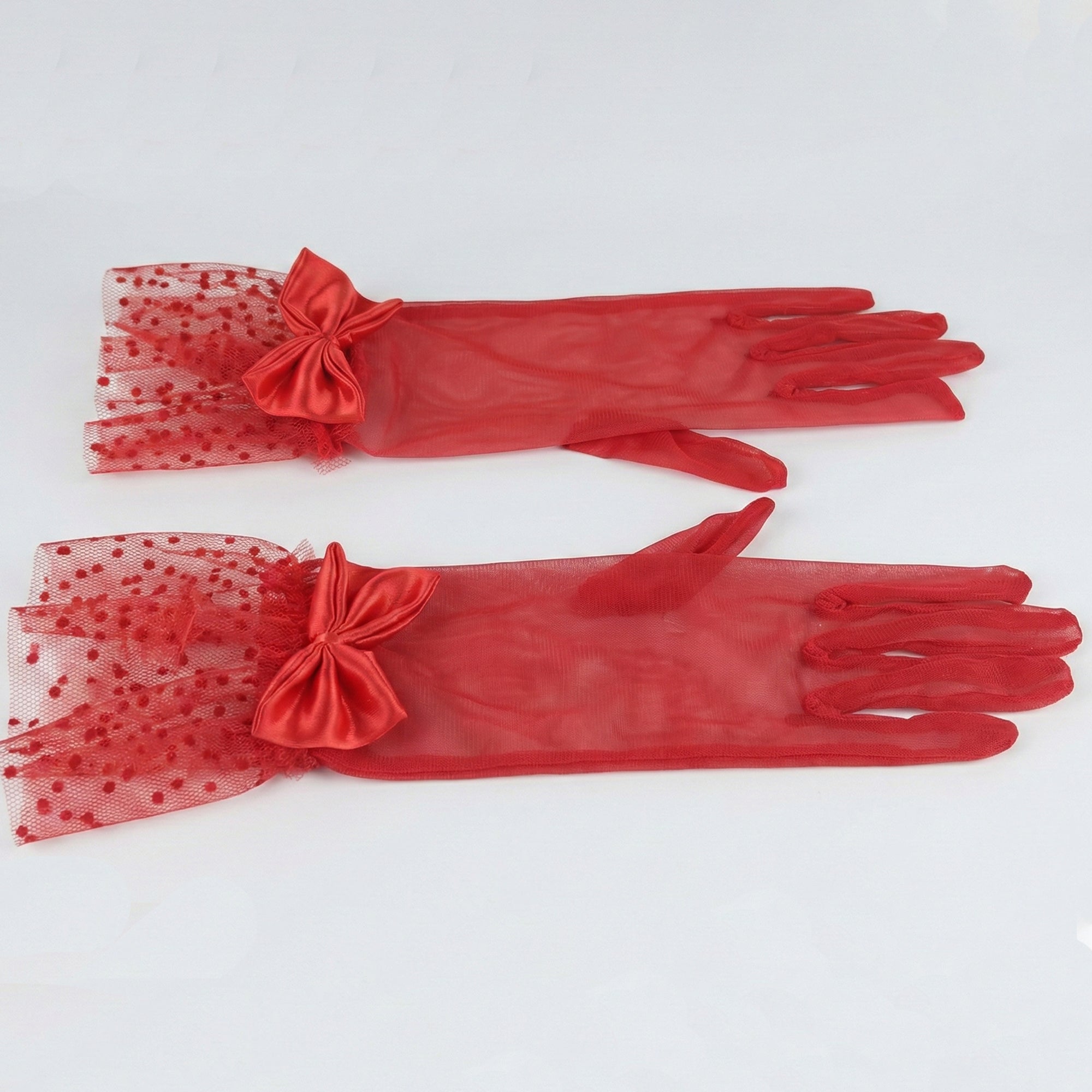 | Item Name | Women’s Elegant Red Lace Gloves with Bowknot – Vintage Mesh Wrist Length Party & Evening Gloves |