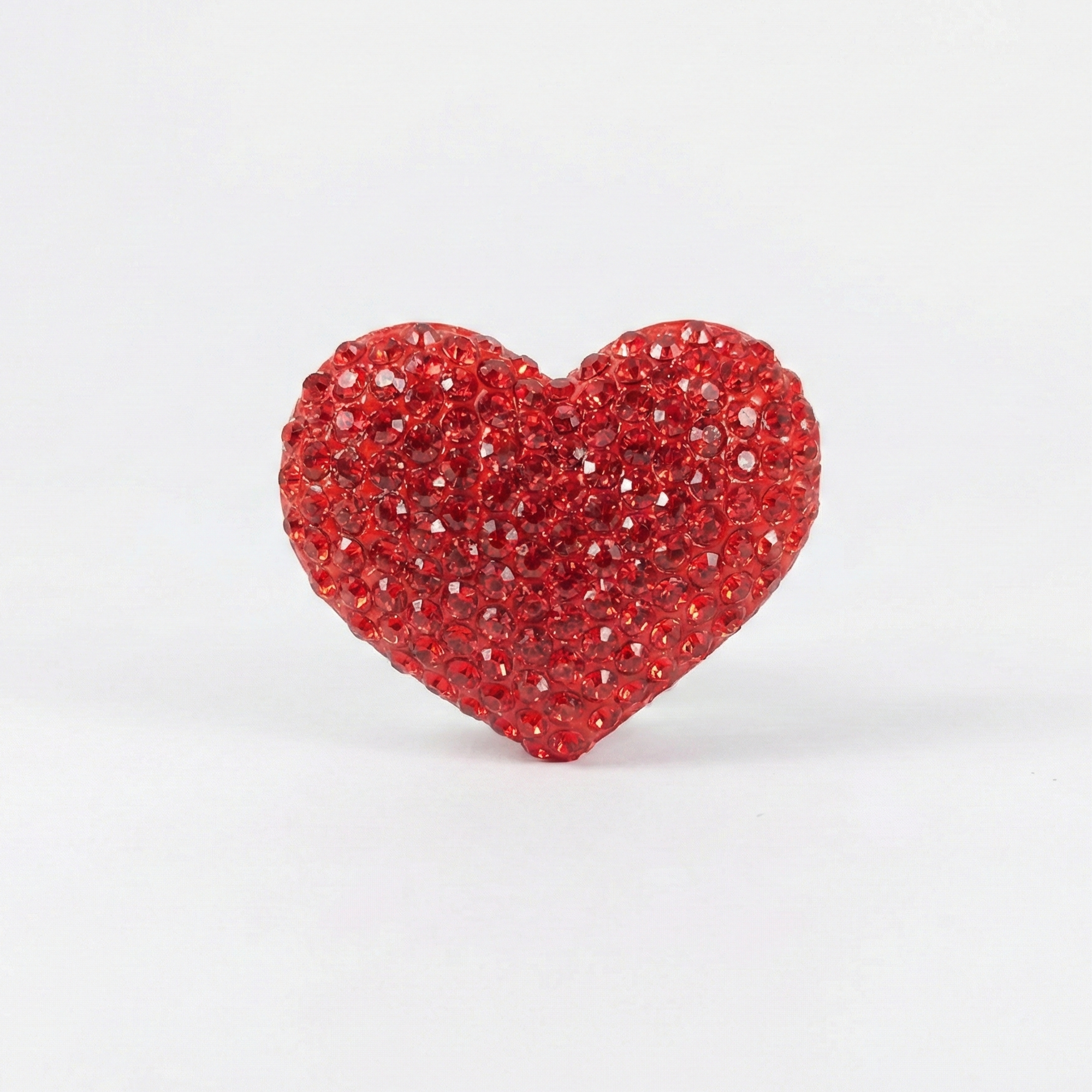 Eye-catching heart-shaped design fully paved with vibrant red crystal rhinestones for maximum sparkle.