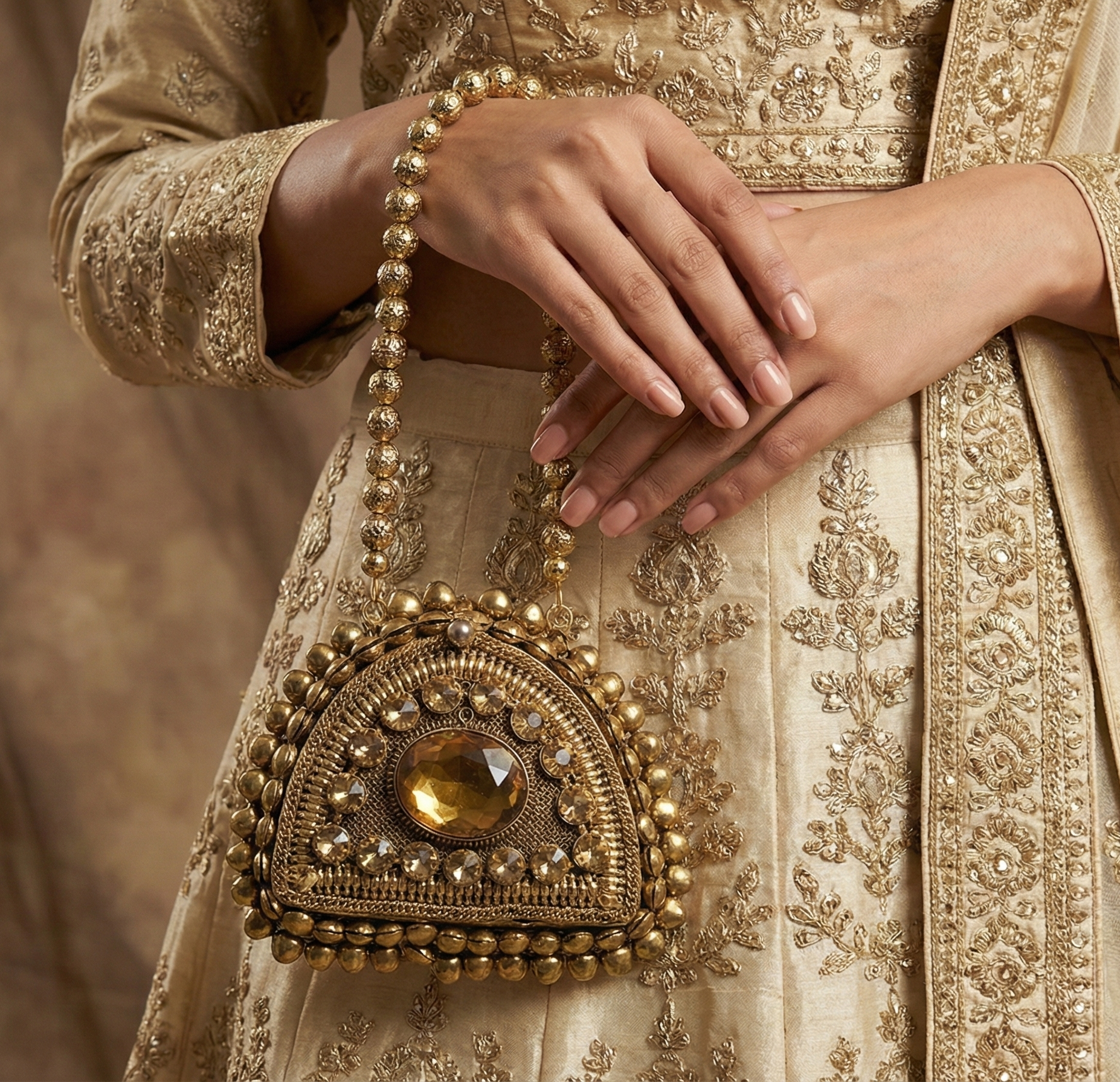 • Compact Statement Accessory: Designed to hold small essentials while serving as a piece of jewelry in itself, perfect for pairing with sarees or evening gowns.