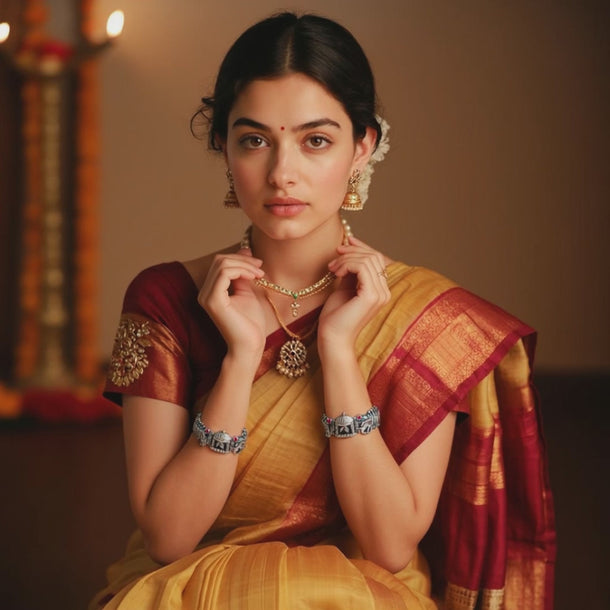 - Handcrafted from premium sterling silver with exquisite traditional temple motifs for a distinct vintage appeal.