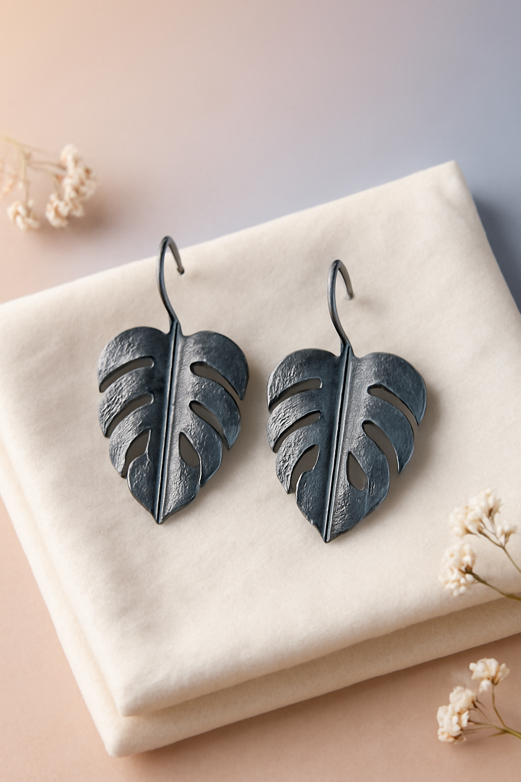 Item Name | OMID, Silver Monstera Leaf Earrings for Women – Statement Dangle Earrings, Nature Inspired Jewelry, Lightweight Boho Gift |