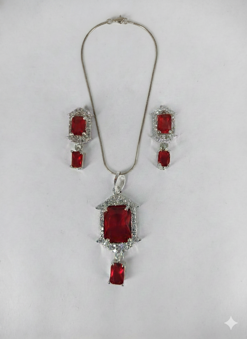 | Item Name | Luxury Ruby Red & American Diamond Geometric Pendant Necklace Set |