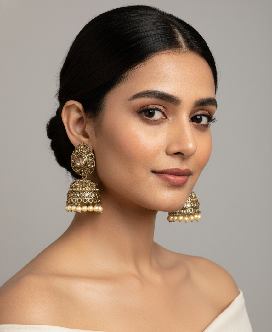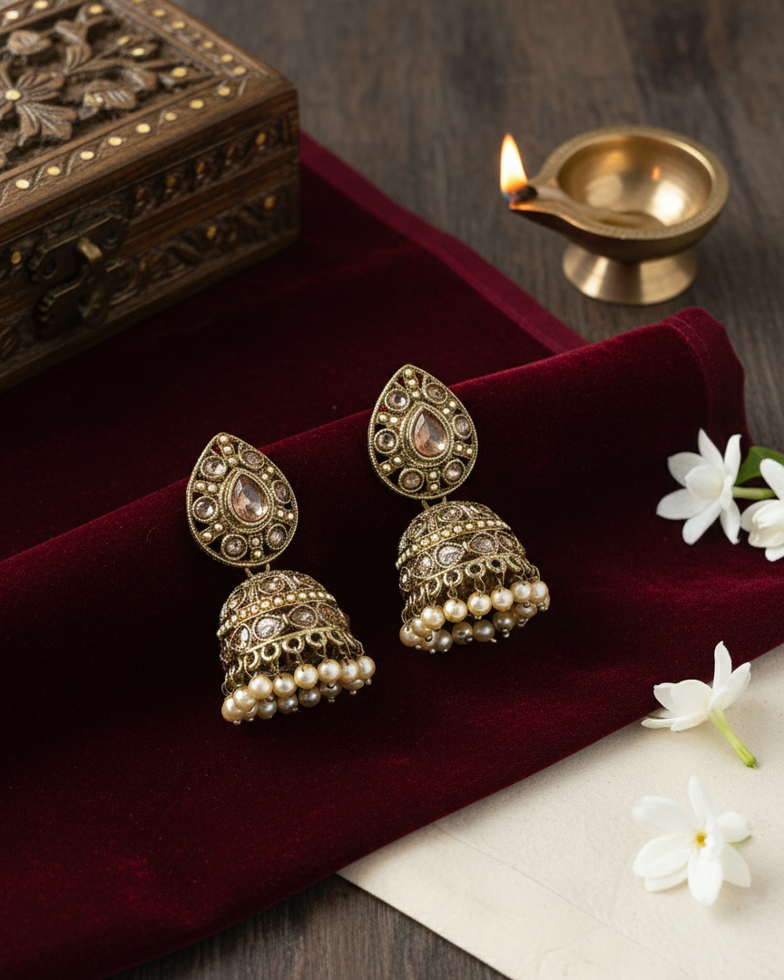 Luxury Champagne Teardrop Kundan-Style Jhumka Earrings