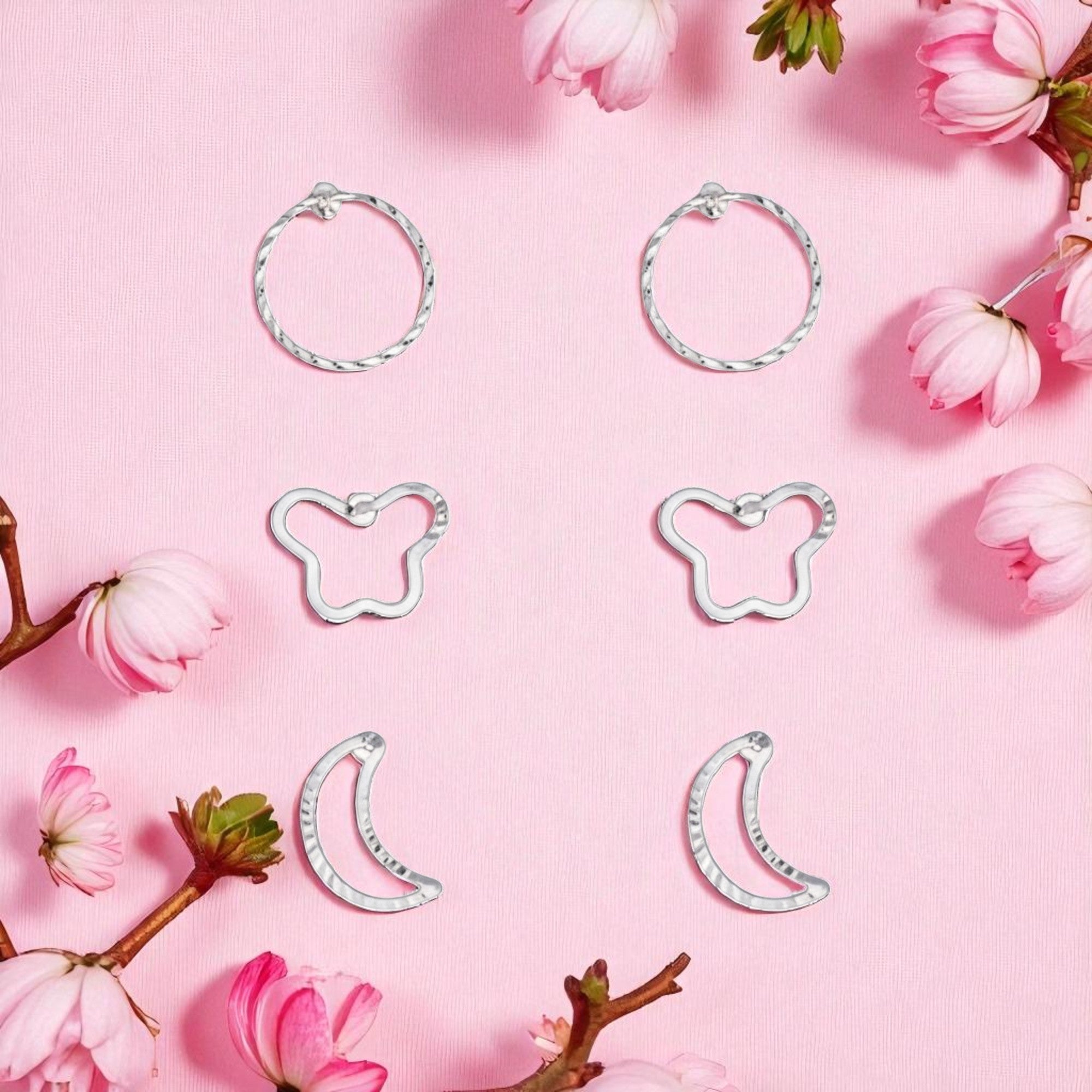 • Unique Set: Includes three different shapes (classic hoop, butterfly, crescent moon) to mix and match for a personalized style.