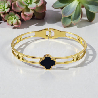 Elegant Black Clover Gold Plated Bangle Bracelet for Women and Girls