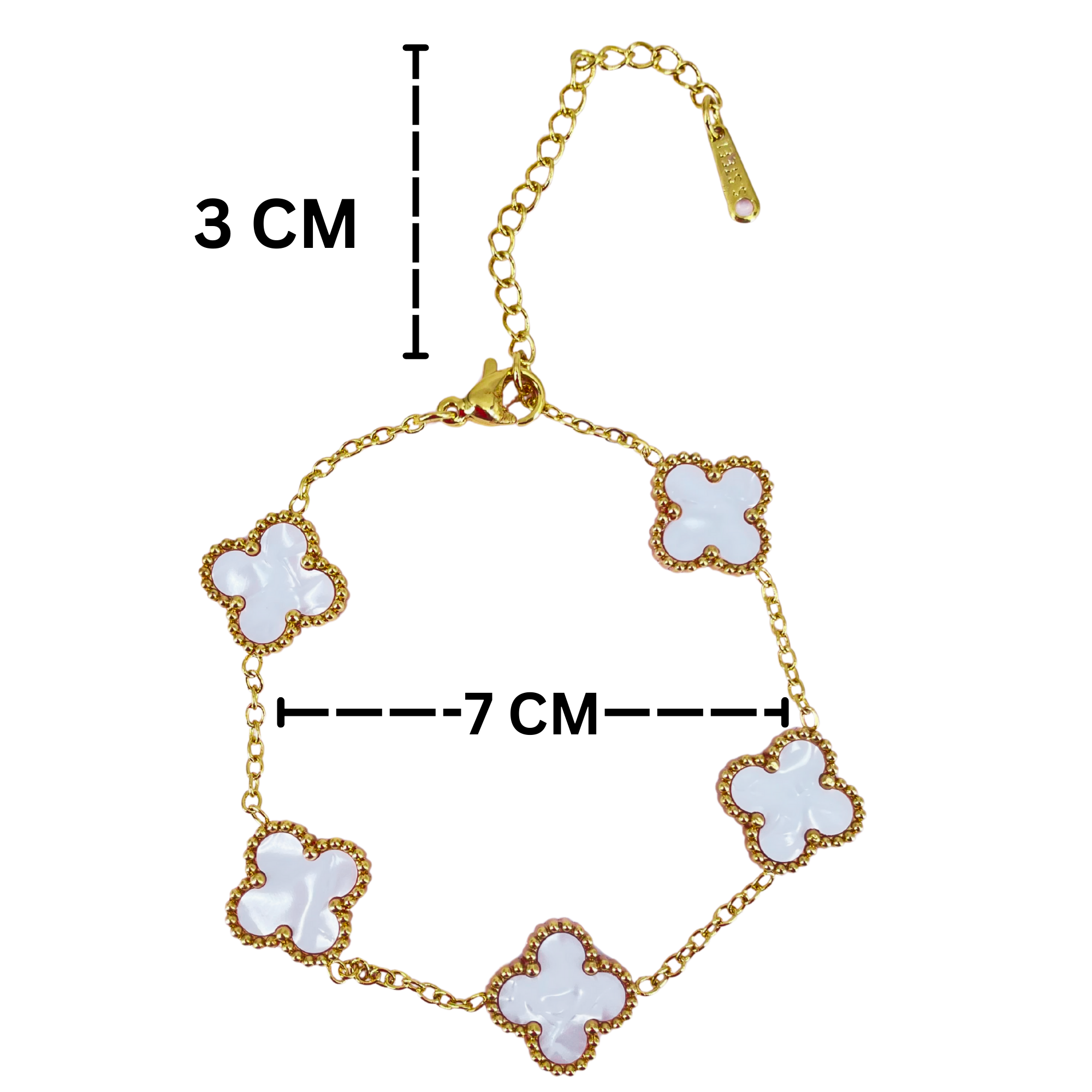 Item NameElegant Five Clover White Enamel Gold-Tone Bracelet for Women and Girl