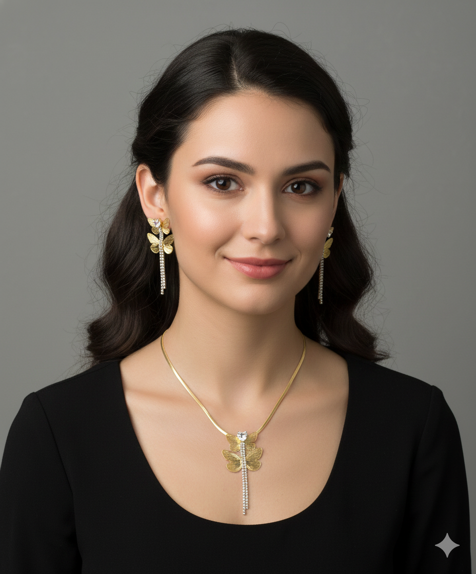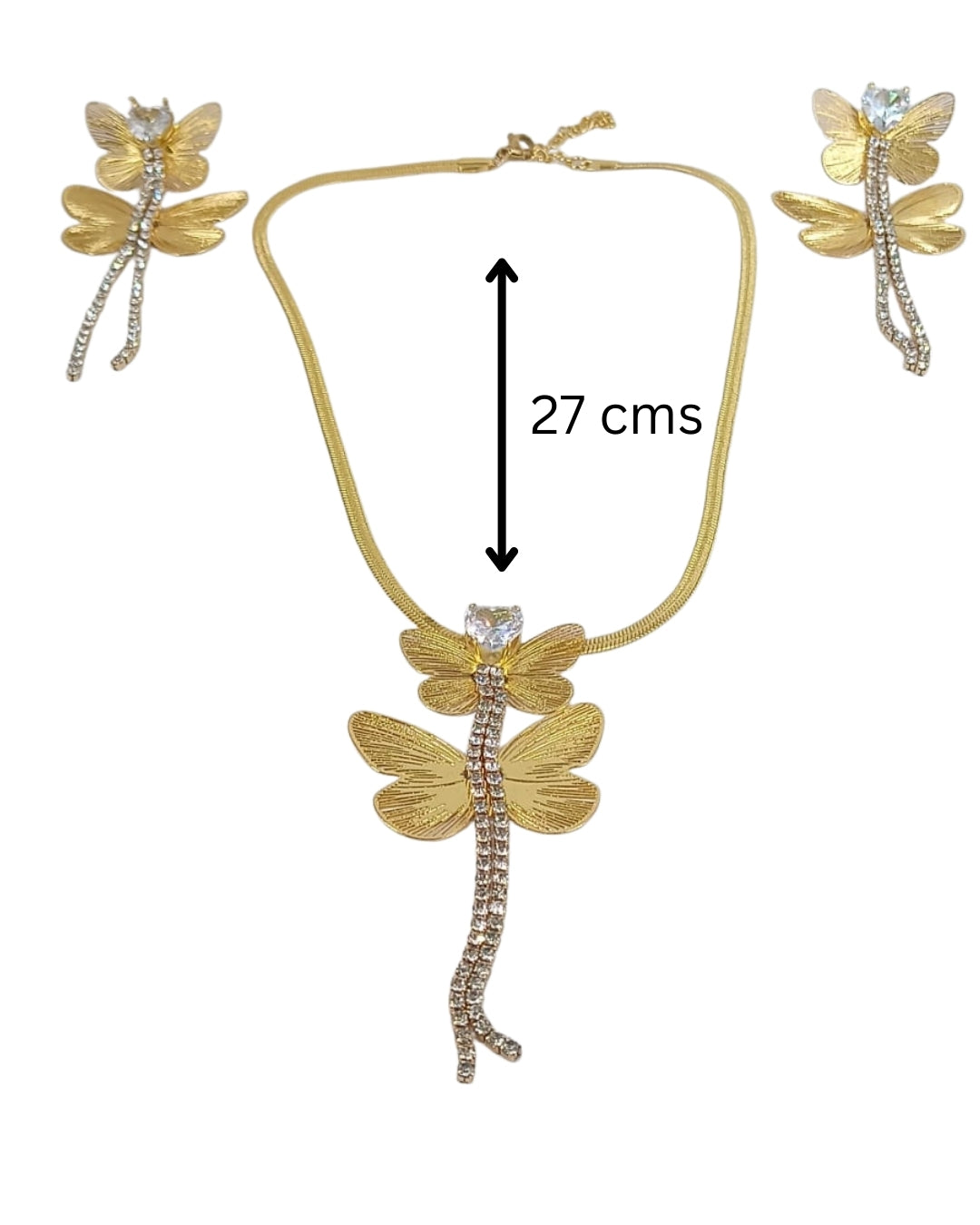 | Item Name | Elegant Gold-Tone Dragonfly Necklace Set with Crystal Pendant & Matching Earrings for Women and Girls. |