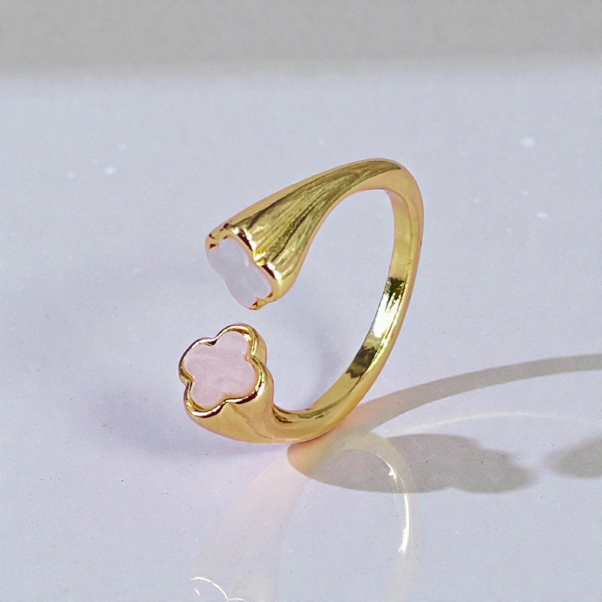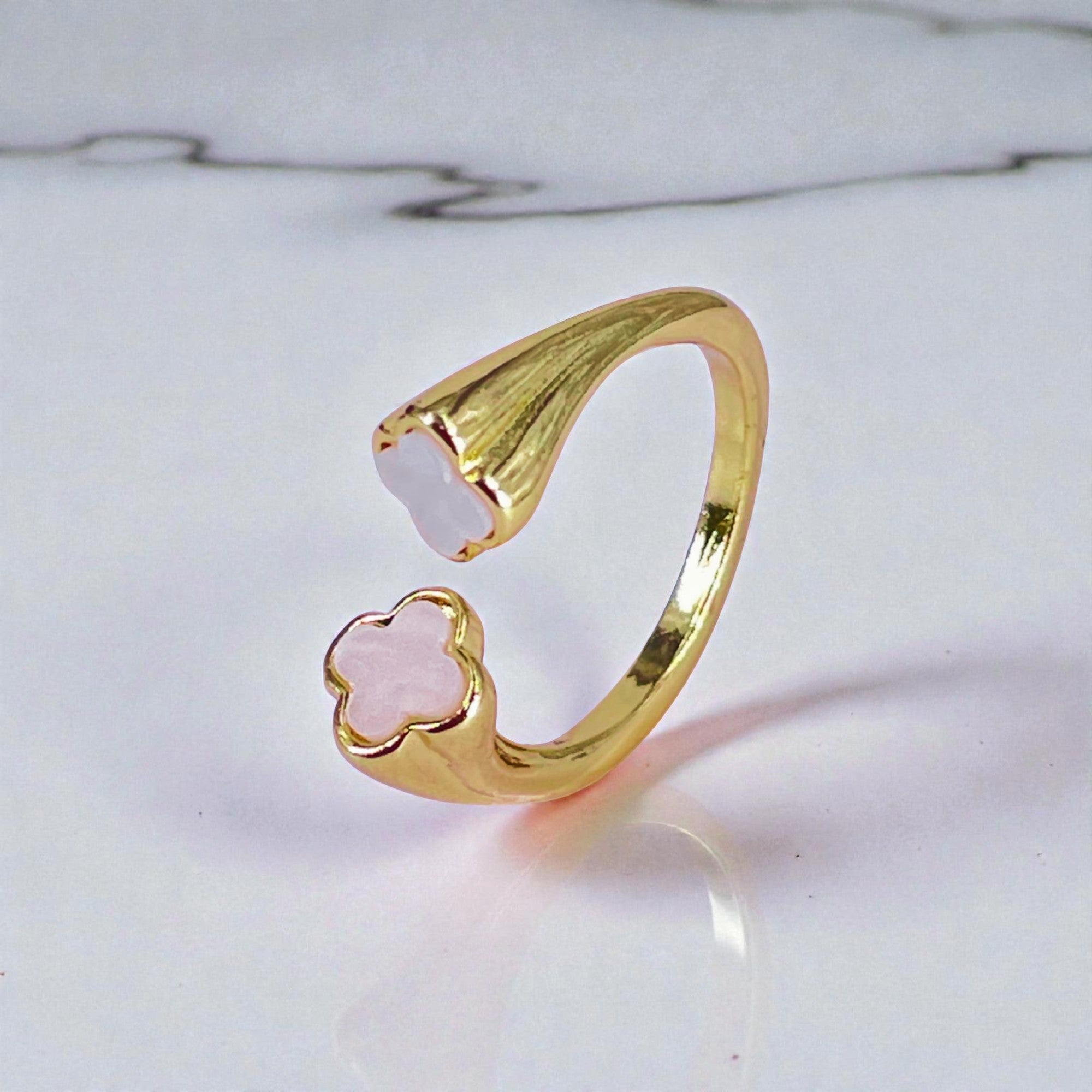 Elegant Pink Clover Adjustable Open Ring for Women & Girls.