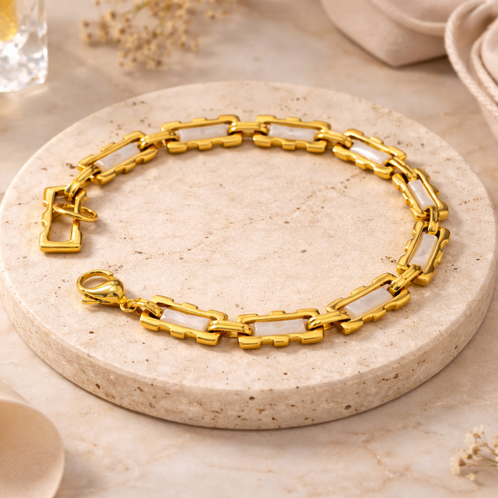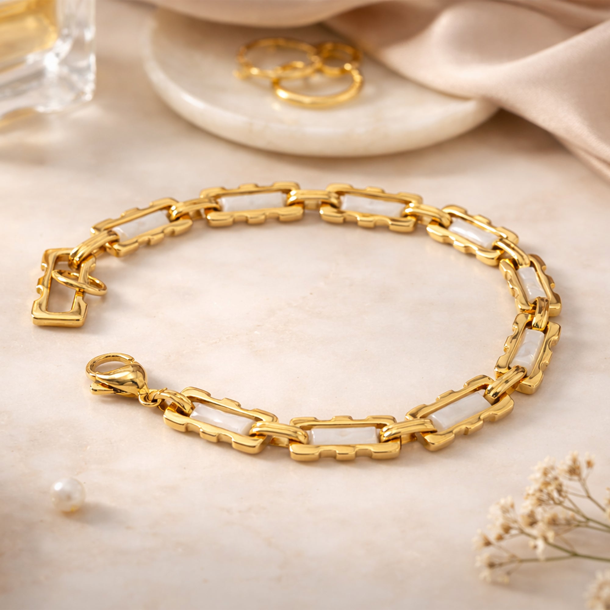 Item NameGold Plated Rectangular Link Chain Bracelet for Women.
