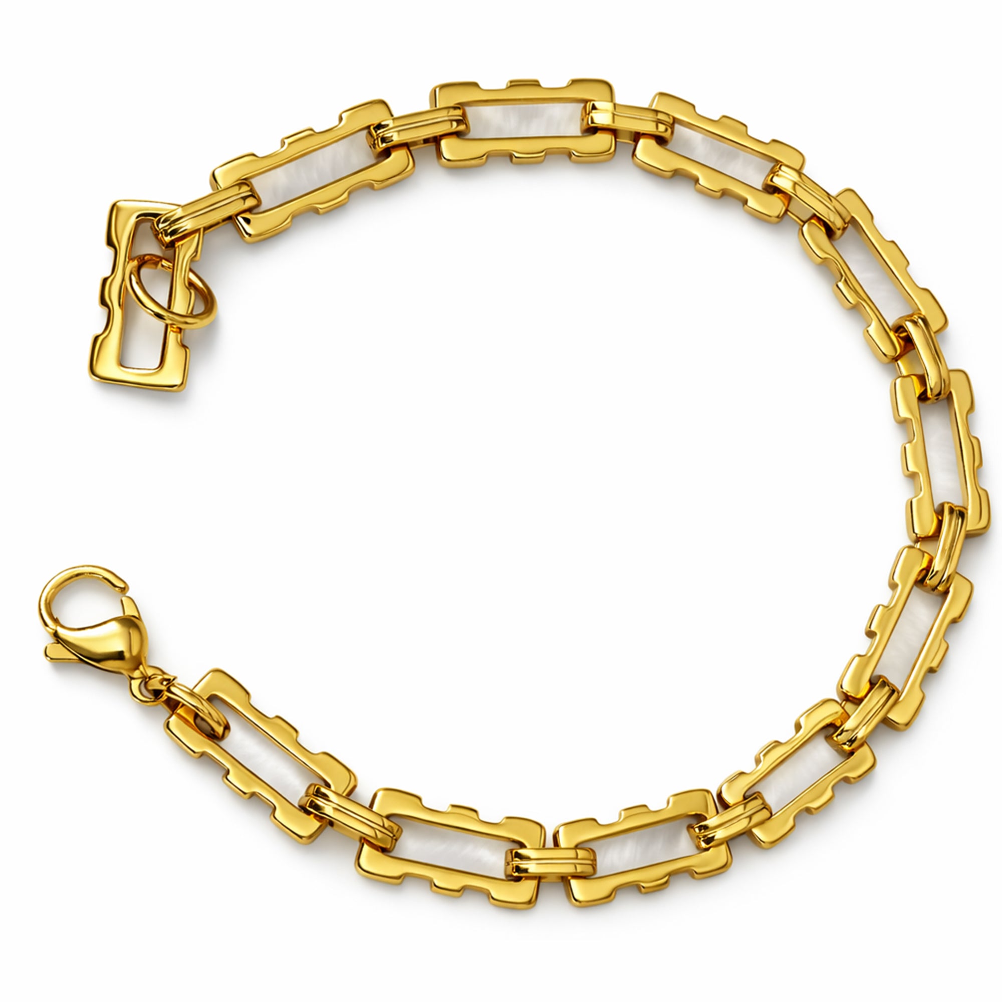 Gold Plated Rectangular Link Chain Bracelet for Women.