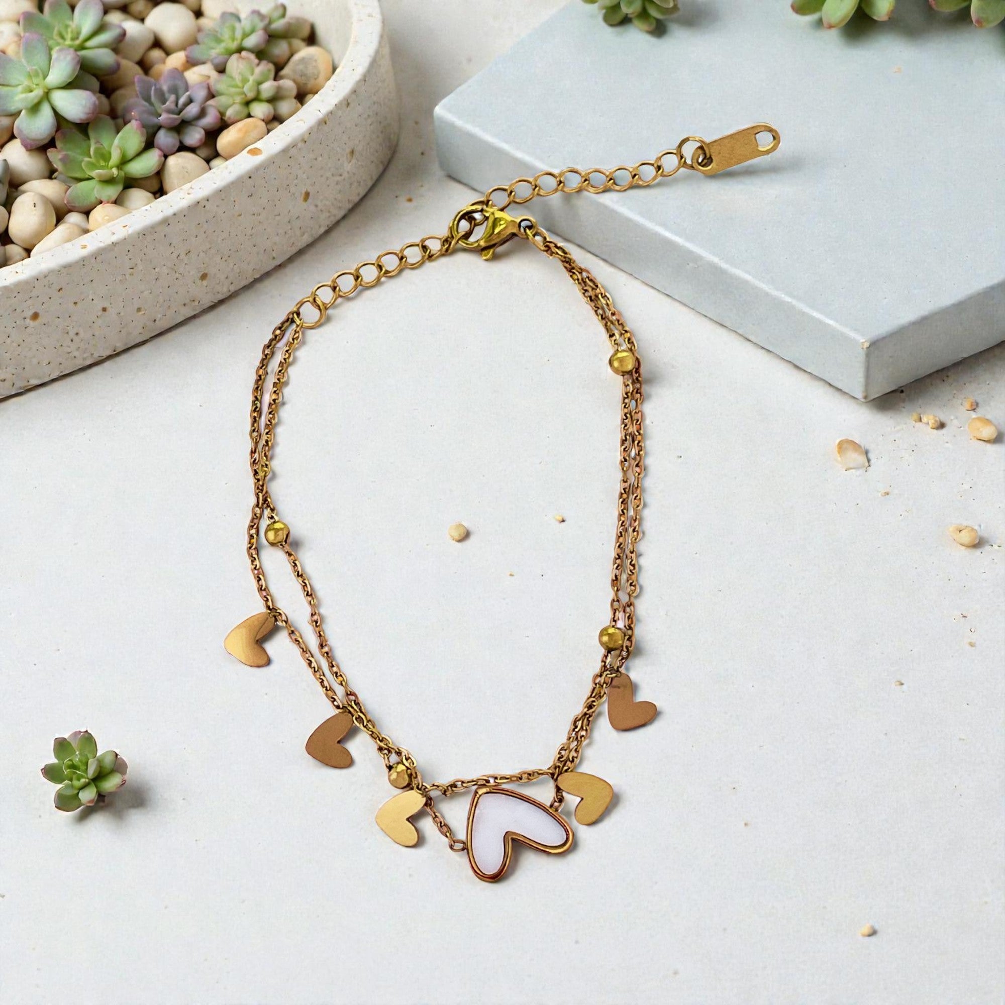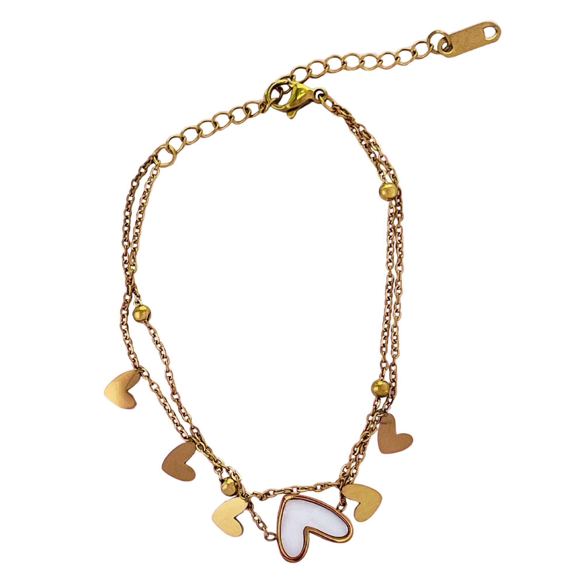 | Item Name | Gold-Tone Double Chain Heart Charm Bracelet with Mother of Pearl Heart Pendant |