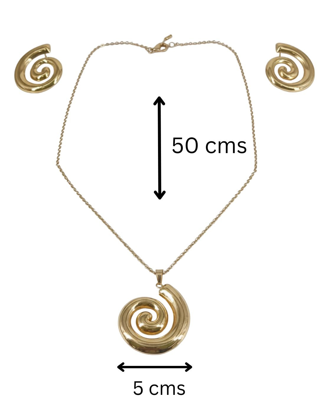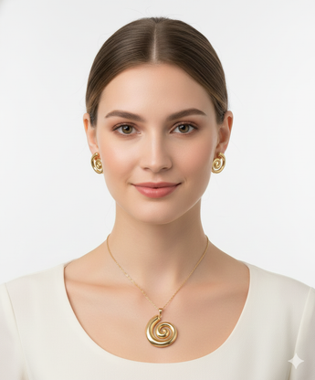Item NameGolden Spiral Swirl Necklace Set for Women – Gold-Tone Stainless Steel Pendant with Matching Earrings