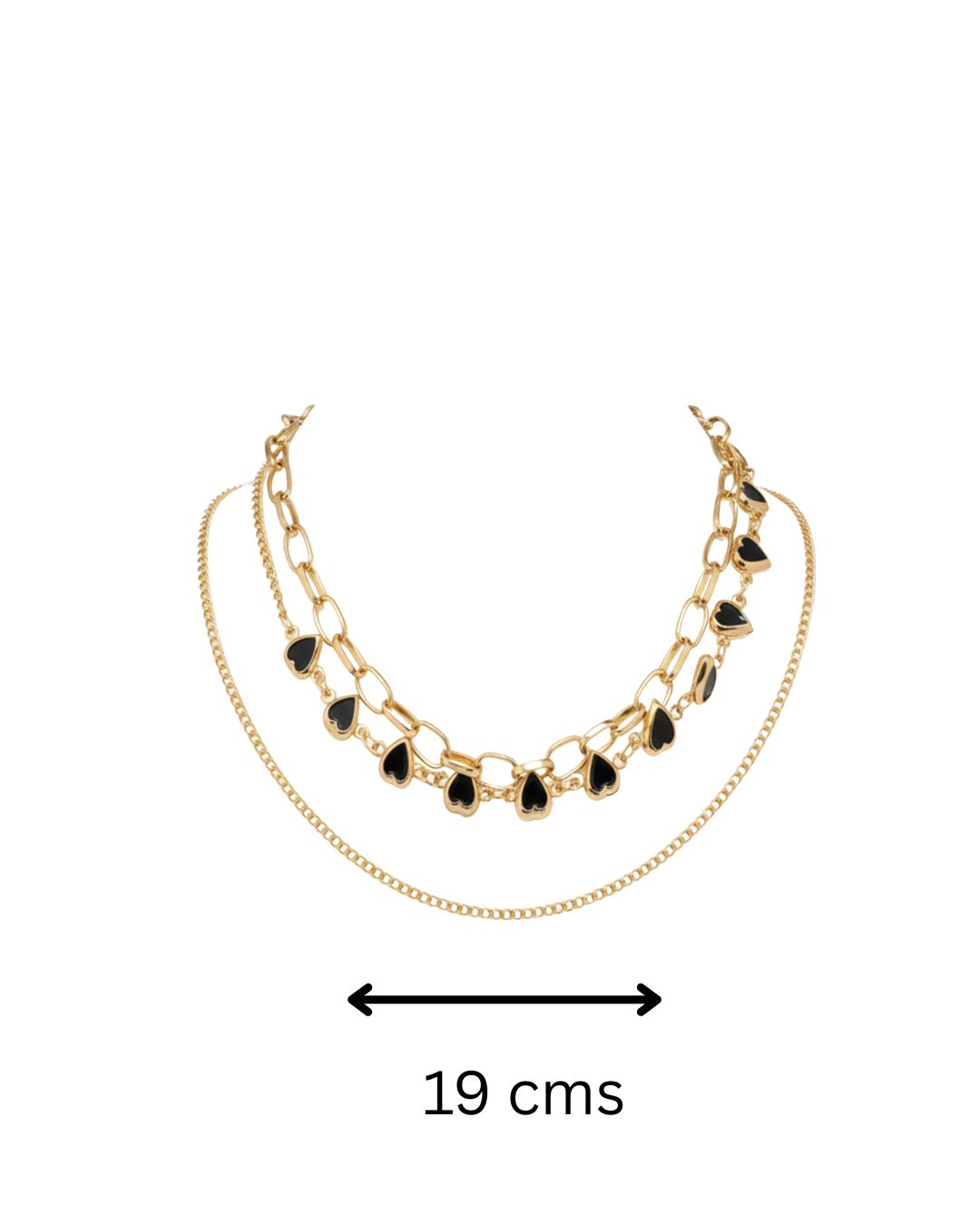 | Item Name | Rose Gold Triple Layer Necklace Set with Black Heart Charms for Women and Girls. |