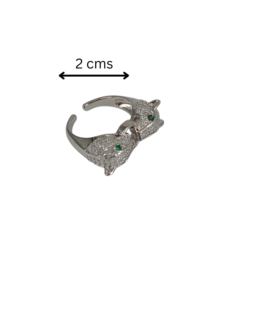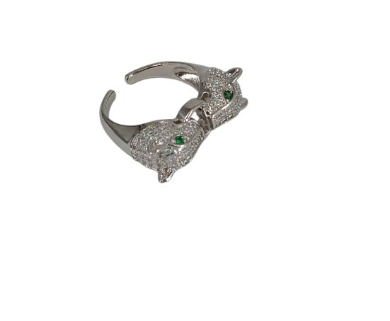 Item NameDual Panther Head Green-Eye Adjustable Ring, Silver-Tone CZ Statement Jewelry for Men & Women.