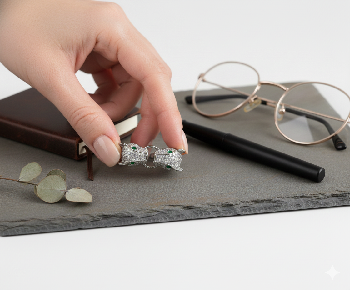 • Dual panther-head design linked at the center for a fierce, luxurious look.