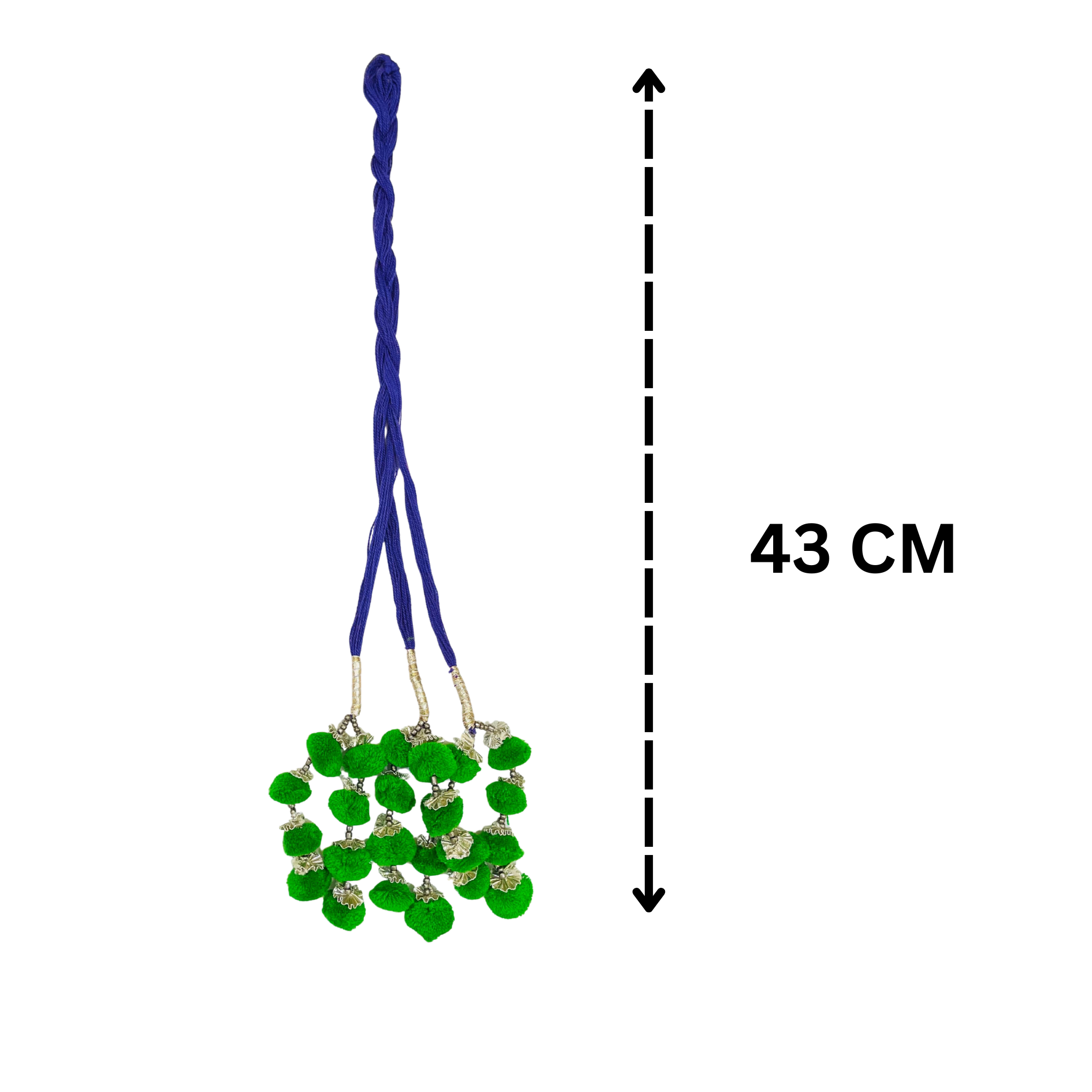 - HANDMADE DESIGN: Crafted with soft green woolen tassels and metallic embellishments, offering exquisite ethnic appeal.