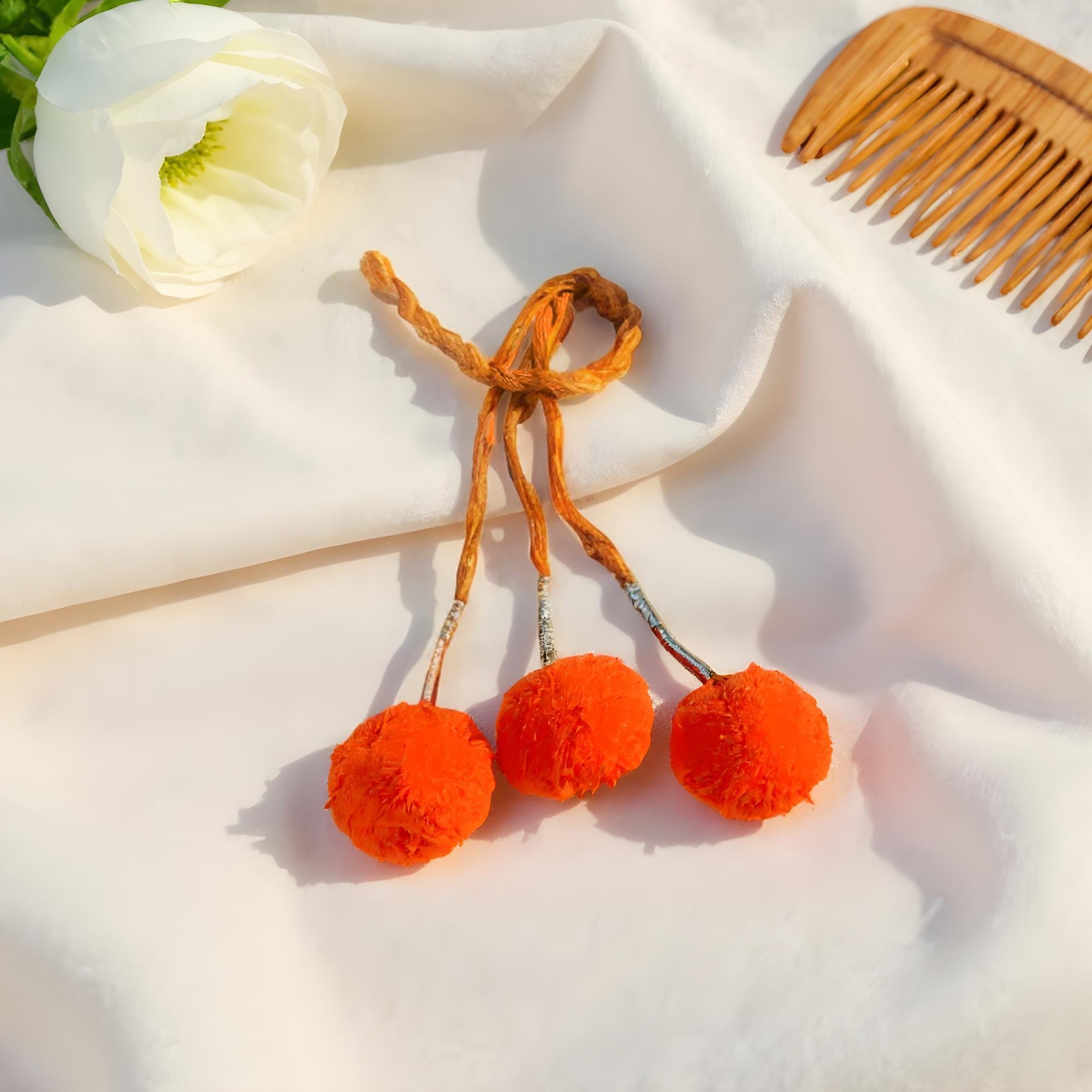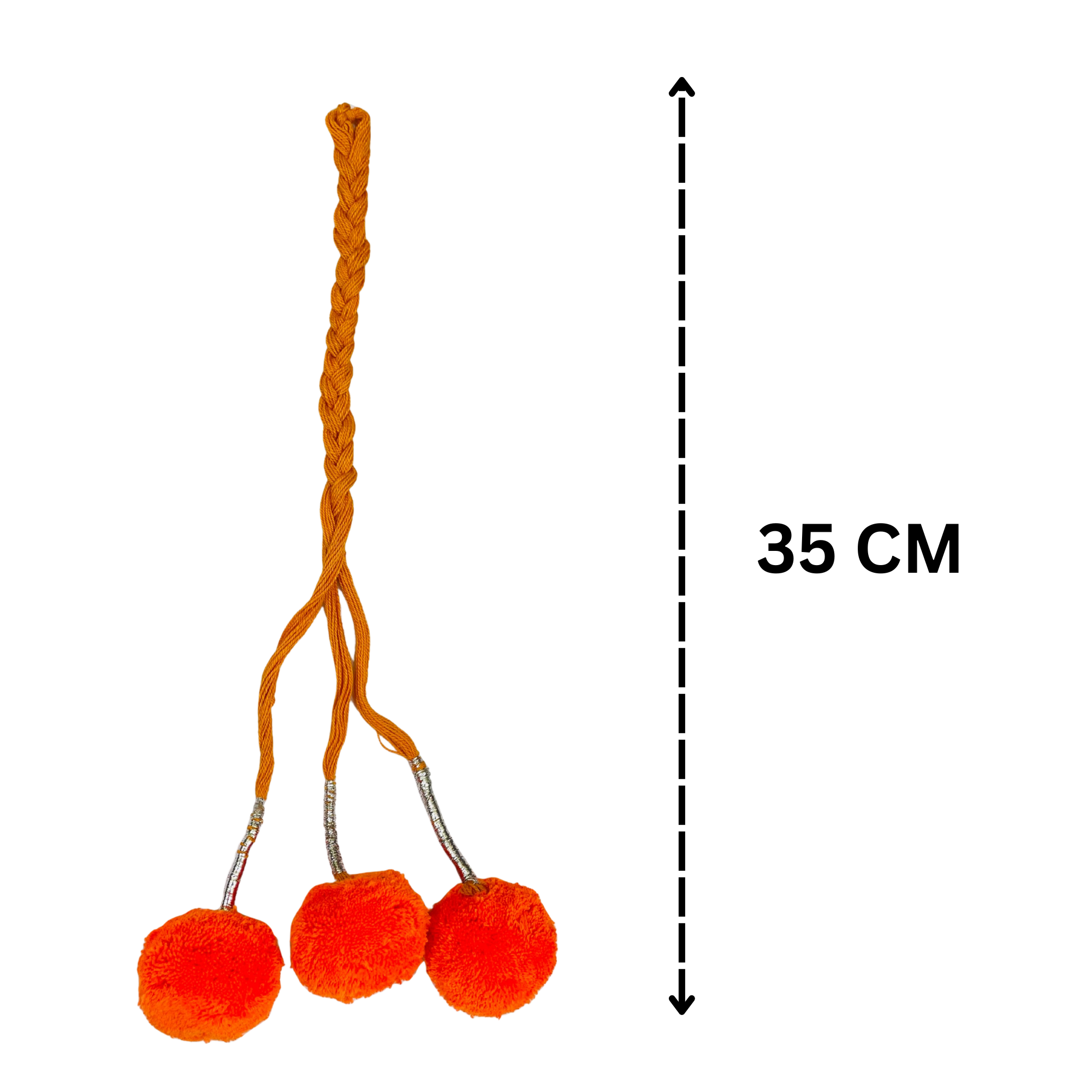 Item Name | OMID, Traditional Punjabi Parandi for Women & Girls – Orange Braided Hair Accessory with Pom Pom Tassels |