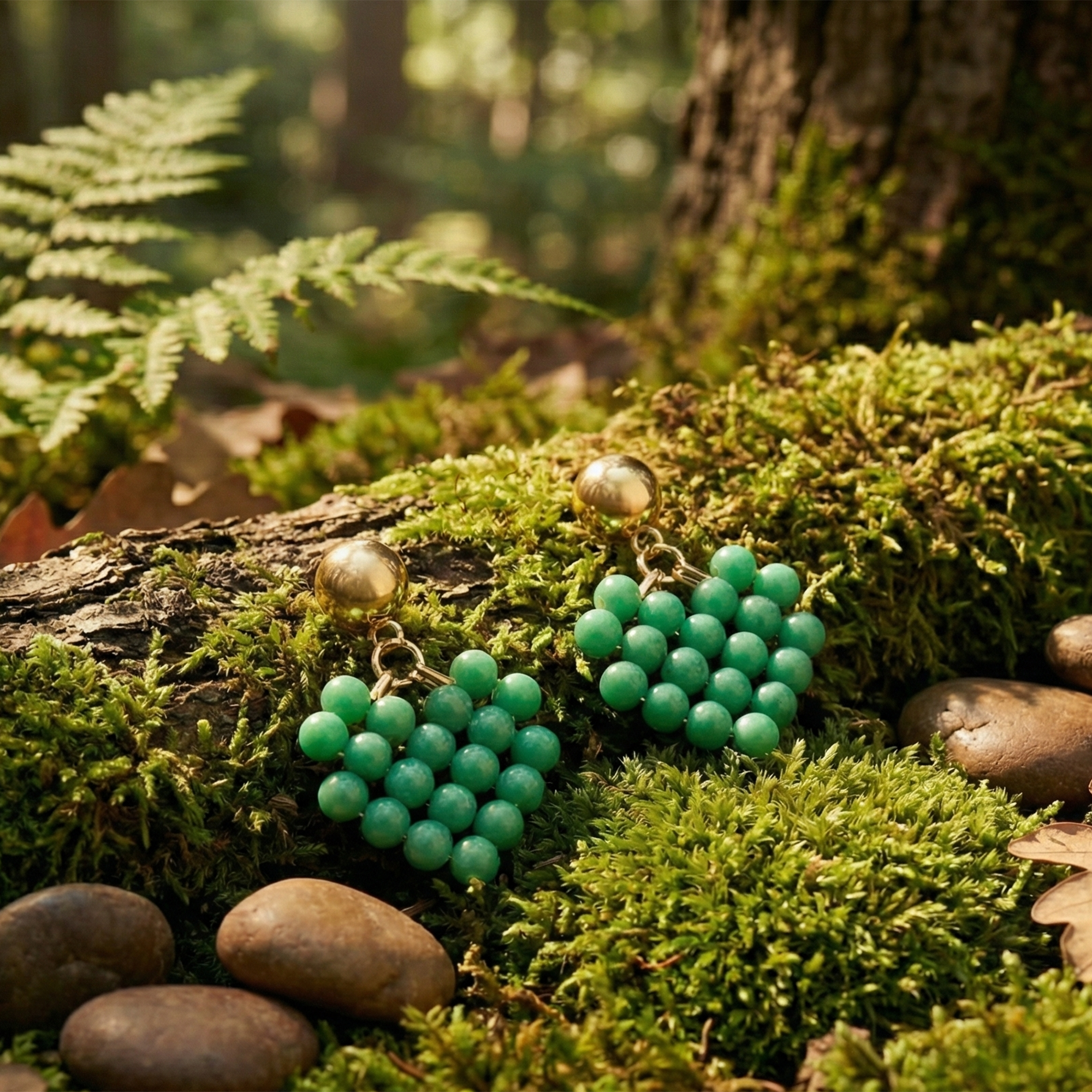 - Heart-shaped cluster design with vibrant green beads for a stylish, eye-catching look.