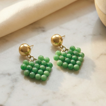 | Item Name | Green Beaded Cluster Drop Earrings with Gold-Tone Studs |