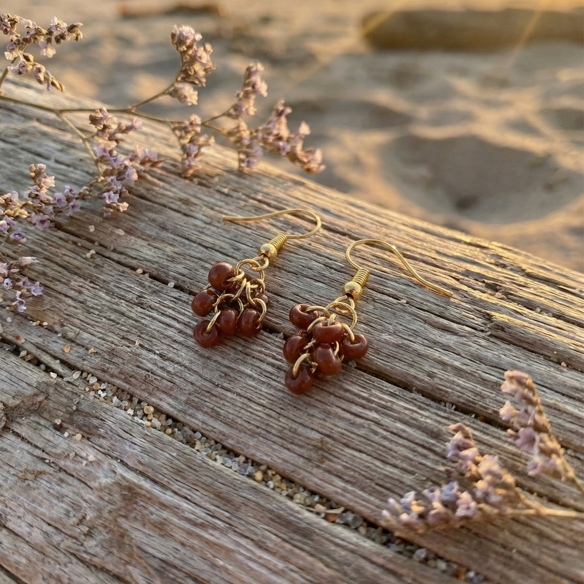 | Item Name | Maroon Beaded Gold Plated Grape Cluster Dangle Earrings for Women and Girls |