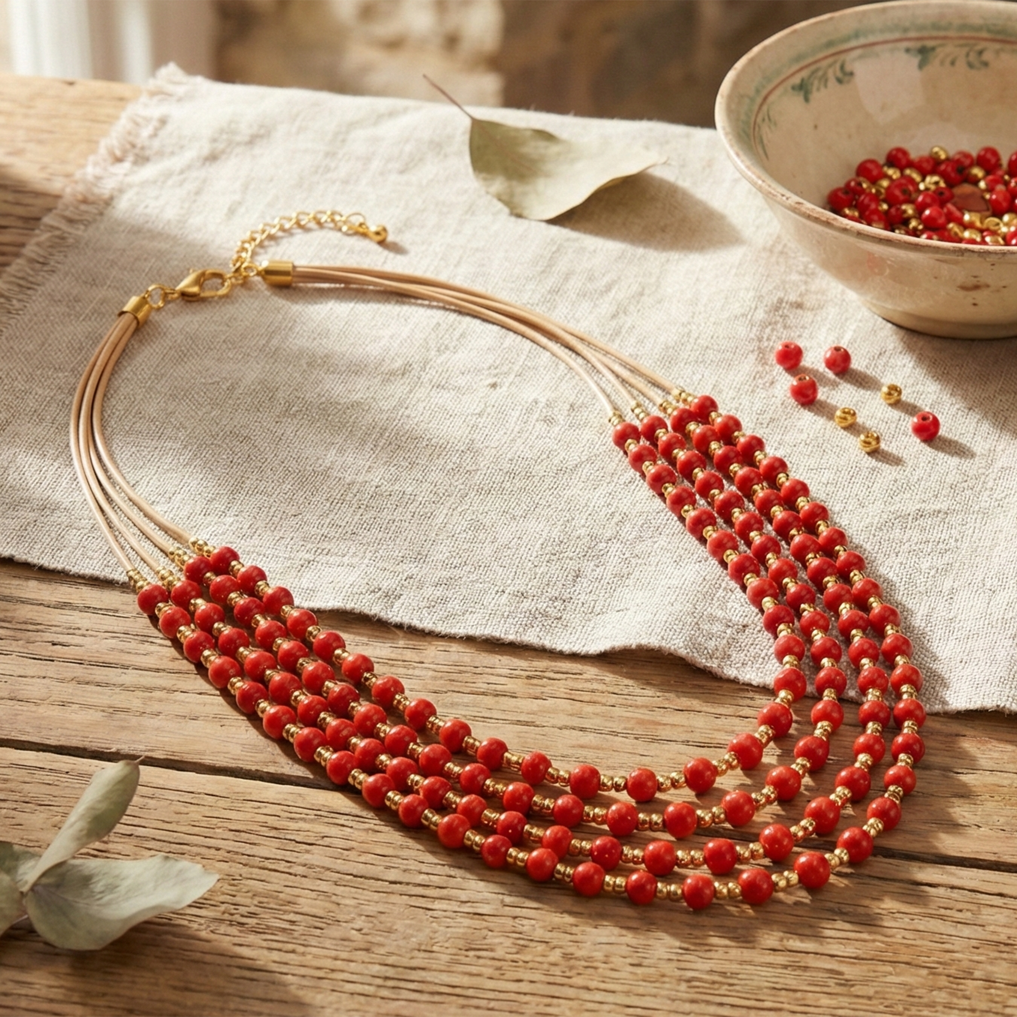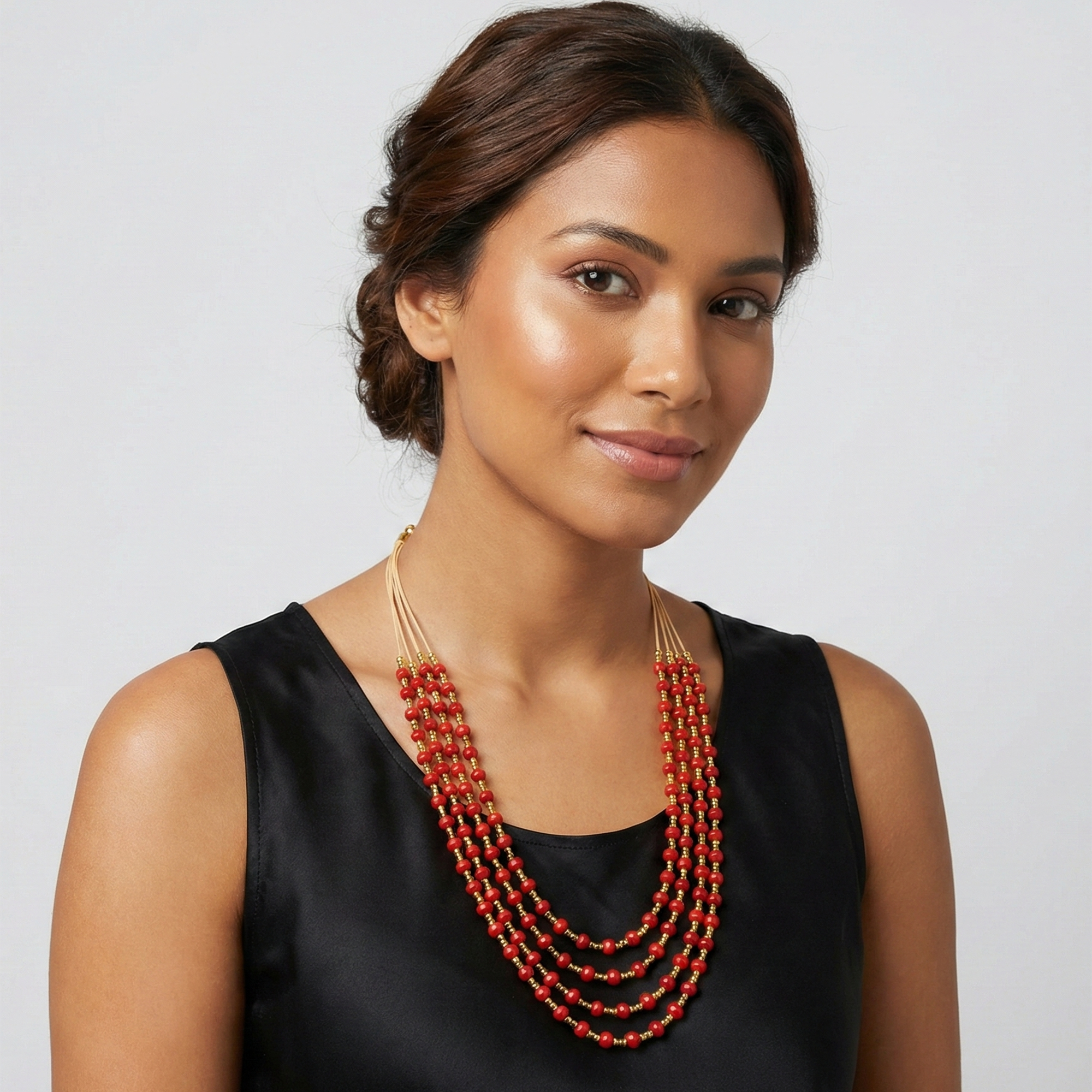 | Item Name | Multi Layer Red Beaded Necklace for Women and Girls |