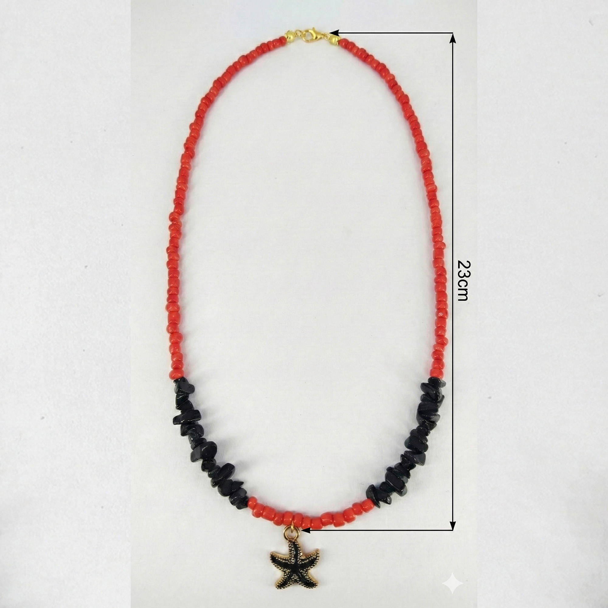 | Item Name | Red Coral and Black Onyx Beaded Necklace With Star Pendant |
