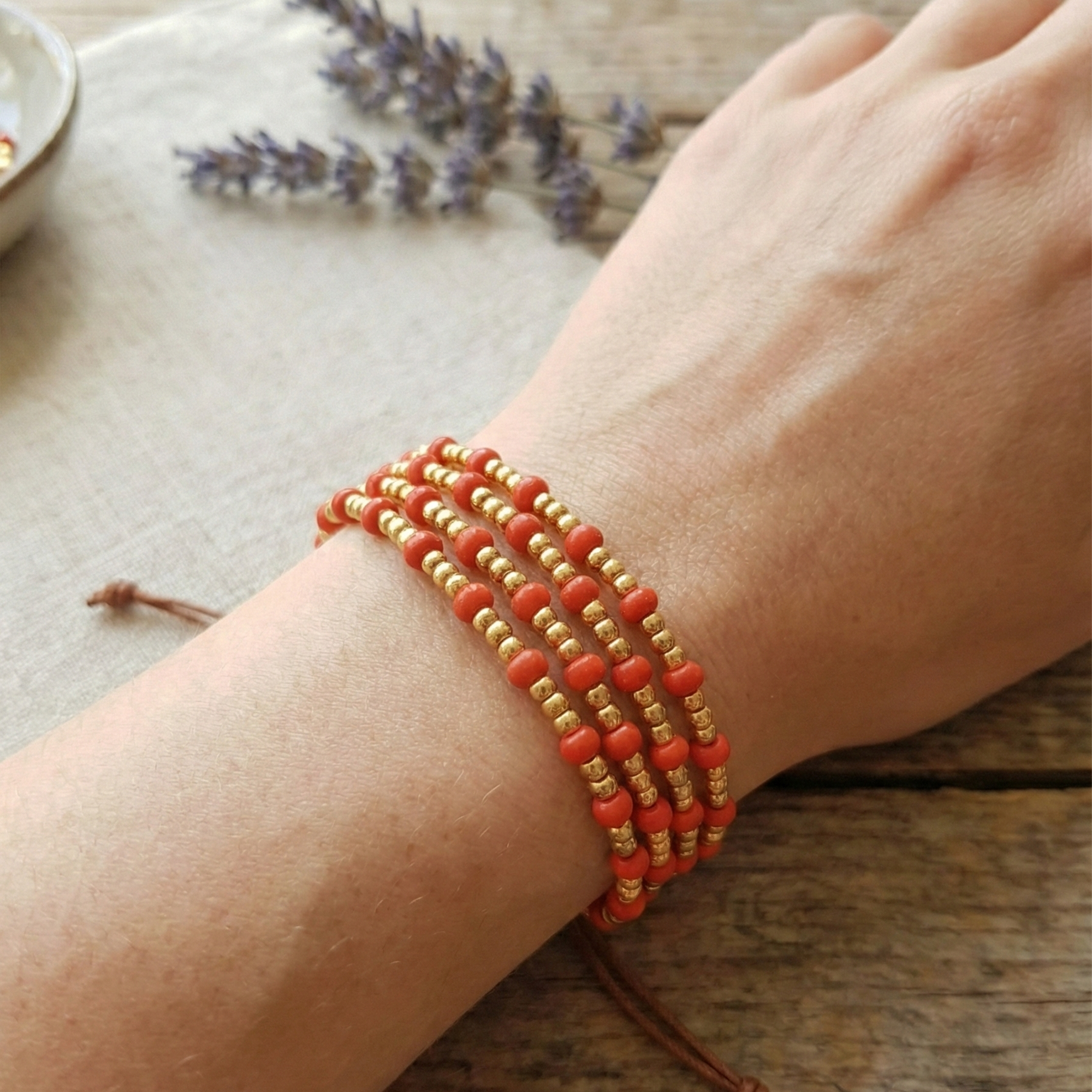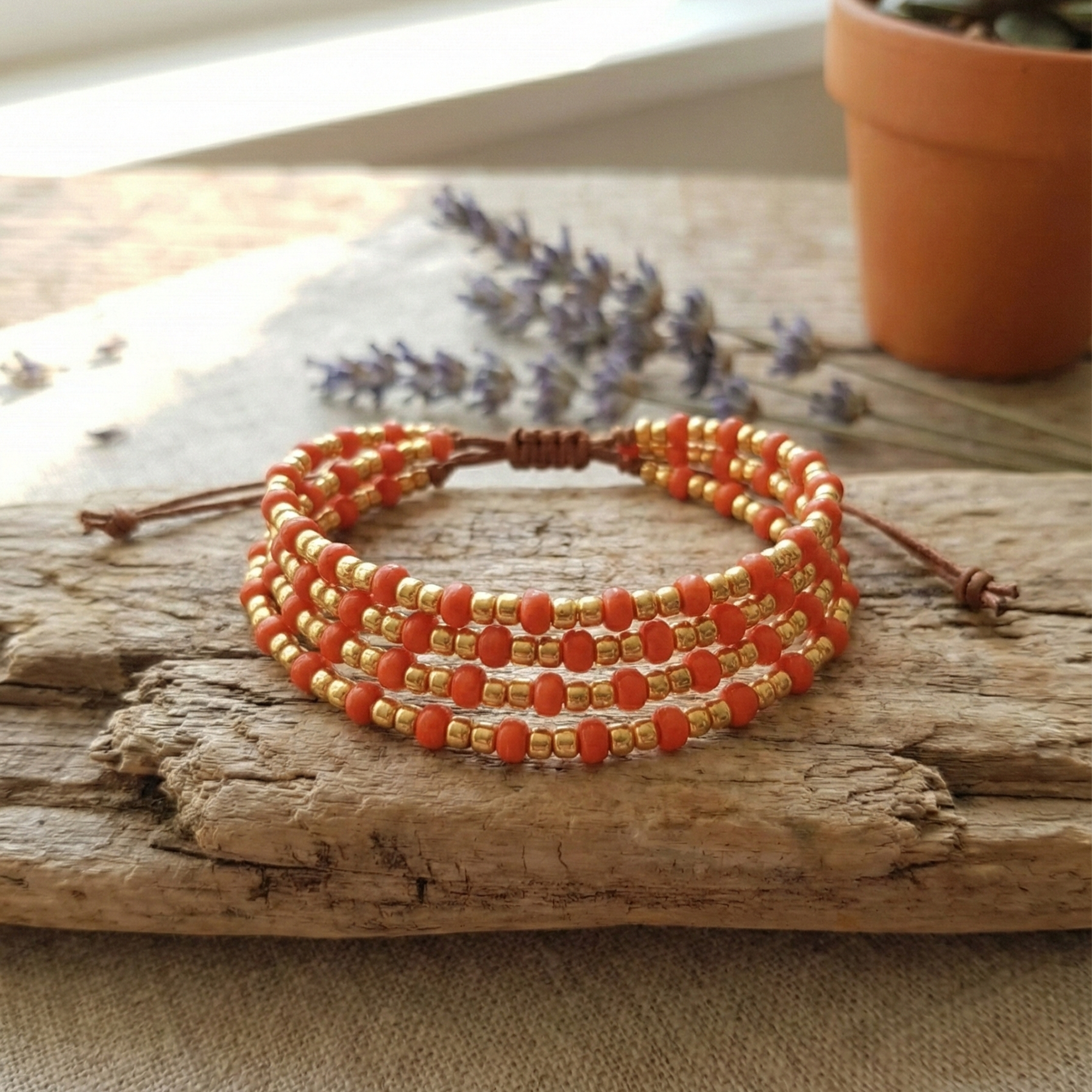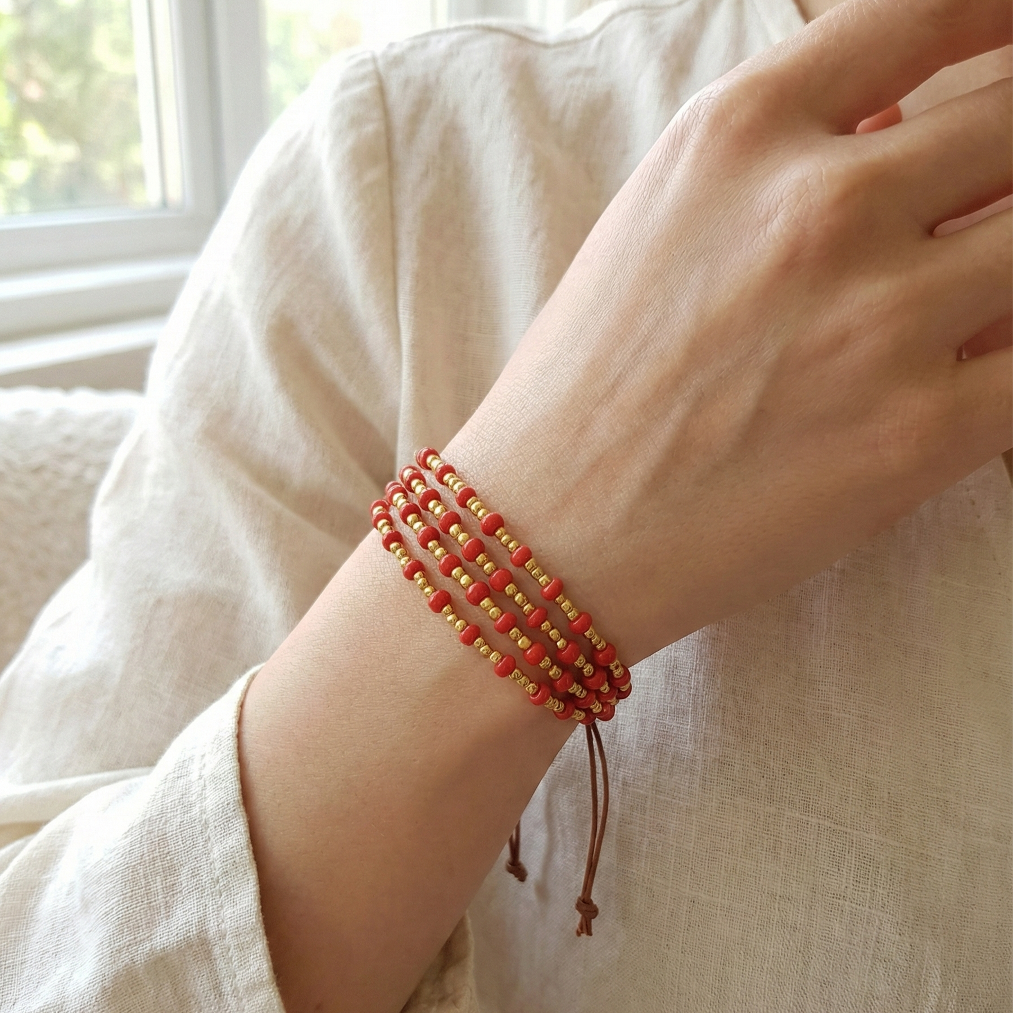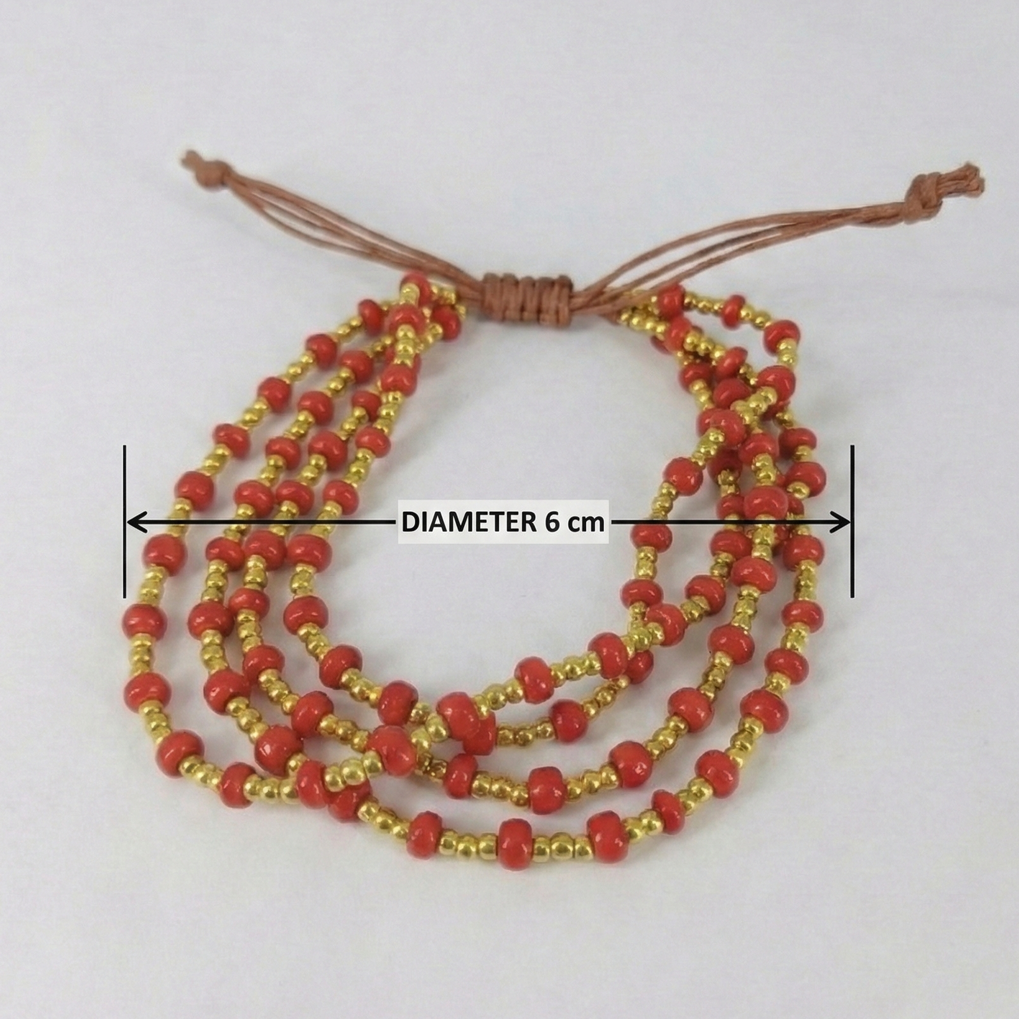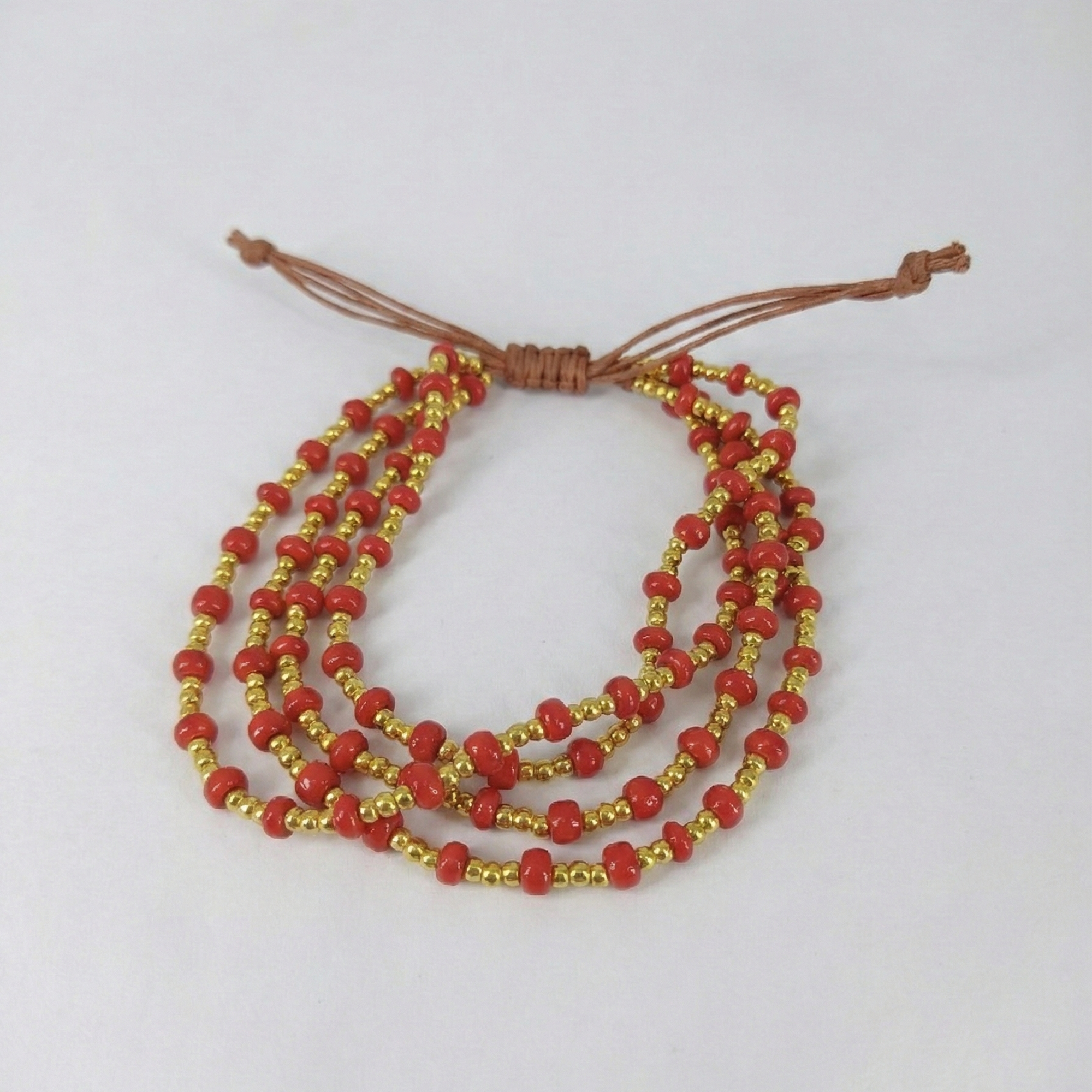 | Item Name | Vibrant Multi-Strand Red and Gold Beaded Adjustable Bracelet |