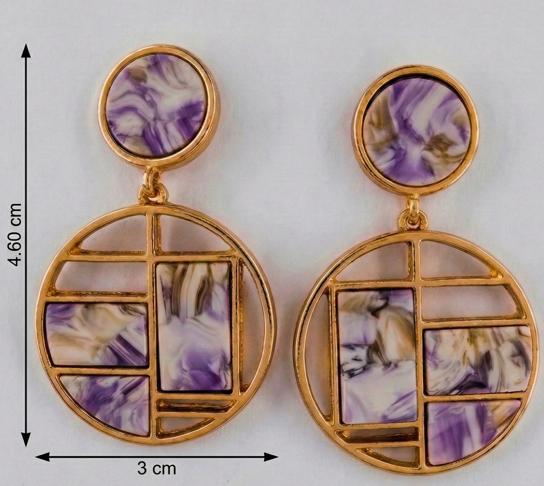 | Item Name | Luxury White & Grey Marbled Geometric Round Drop Earrings |