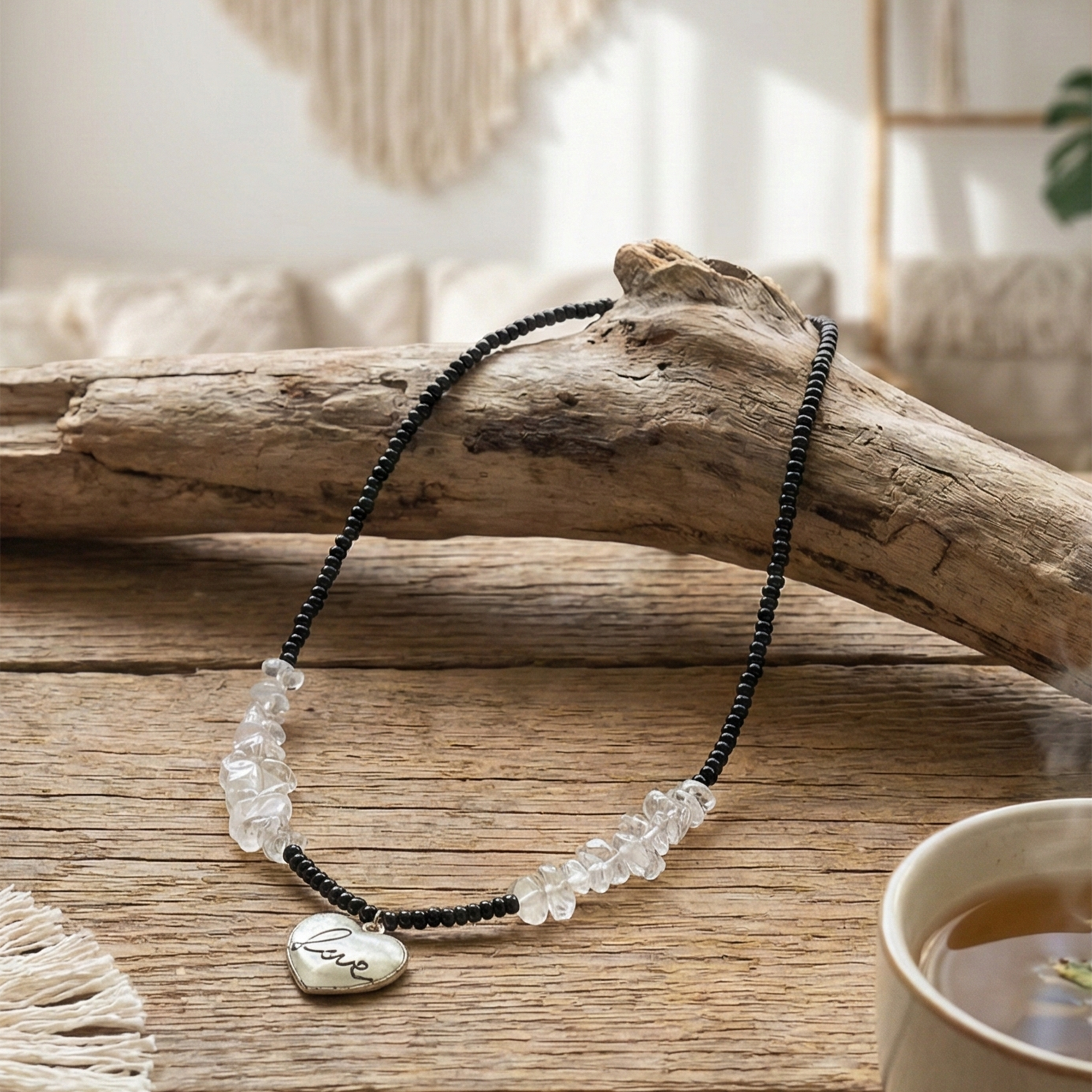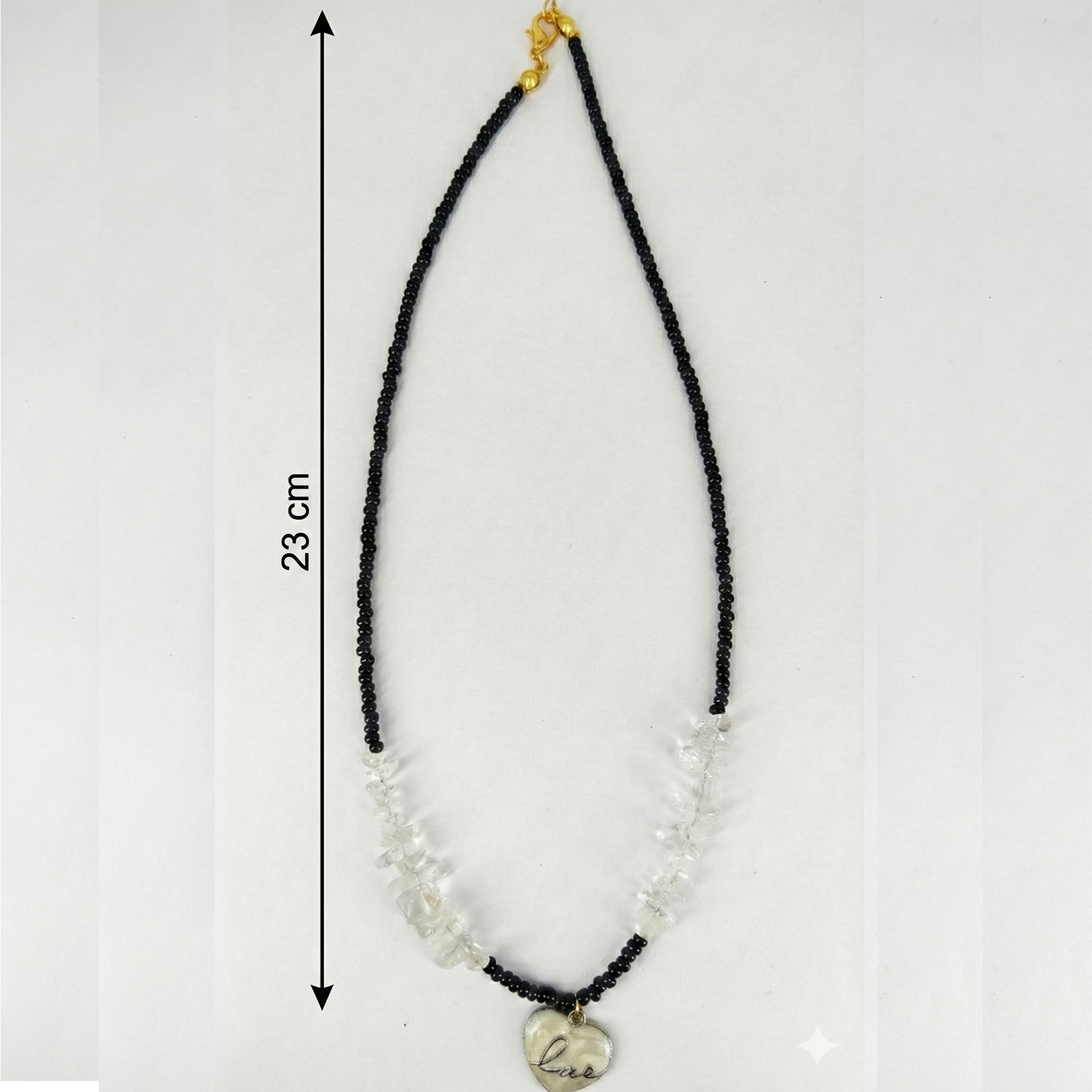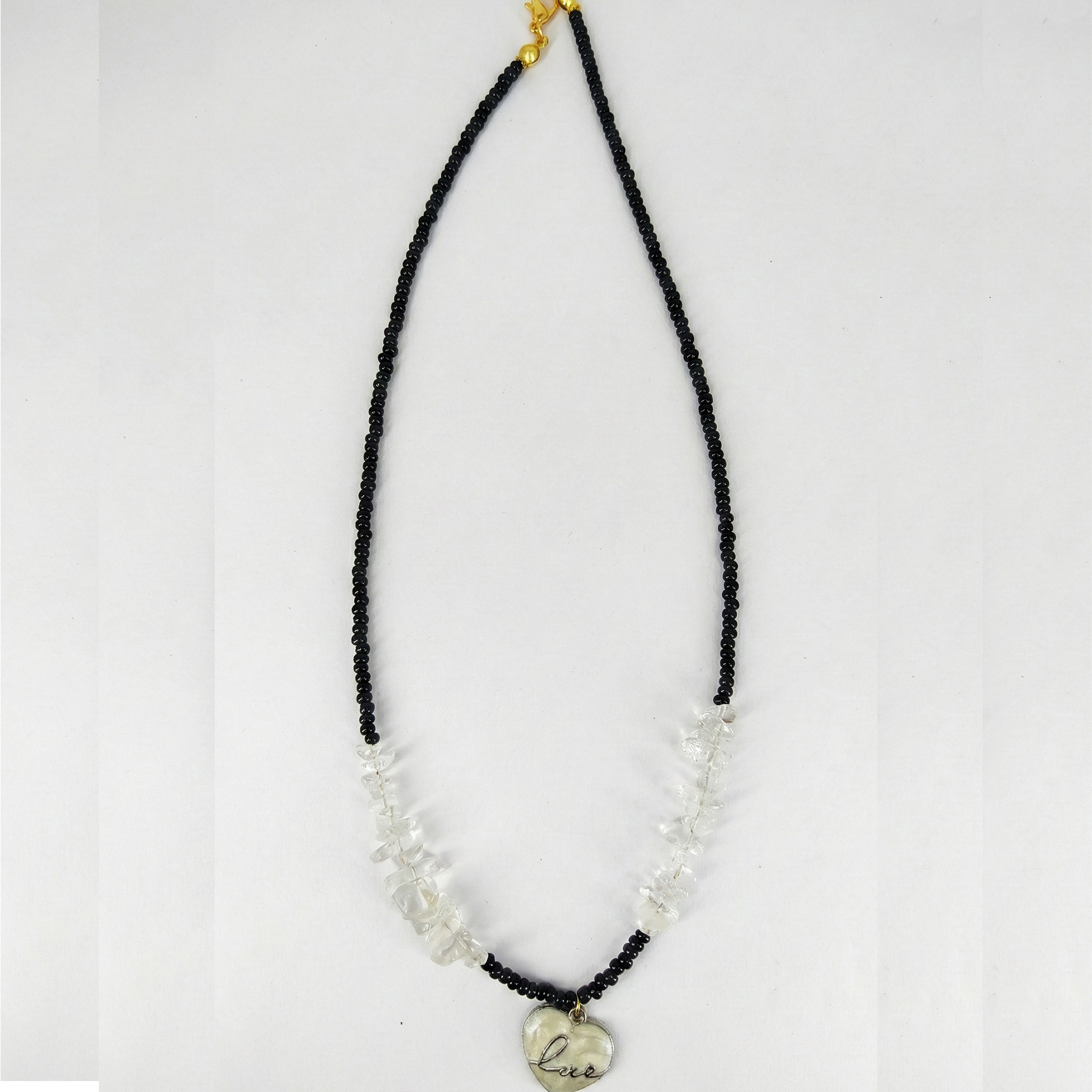 | Item Name | Black Beaded Necklace with Clear Crystal Chips and Oval Stone Pendant for Women |