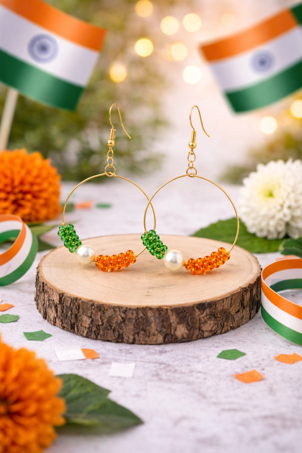 • Vibrant Tri-Color Design: A beautiful blend of green, orange, and white beads, perfect for representing cultural heritage or adding a pop of color to neutral outfits.