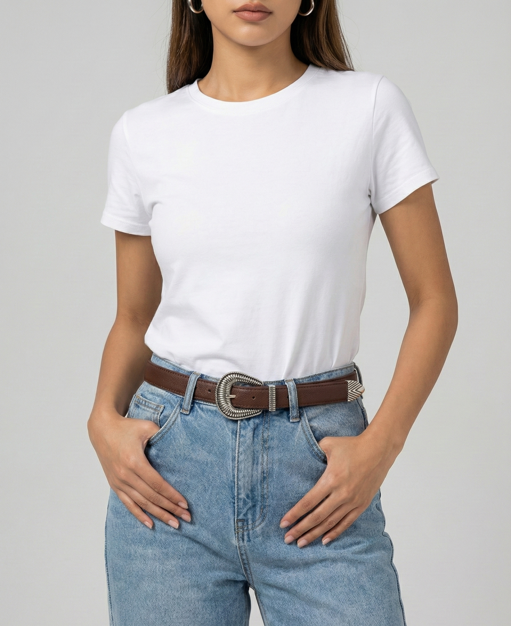 | Item Name | Luxury Chocolate Brown Faux Leather Belt With Silver Western Buckle & Tip |