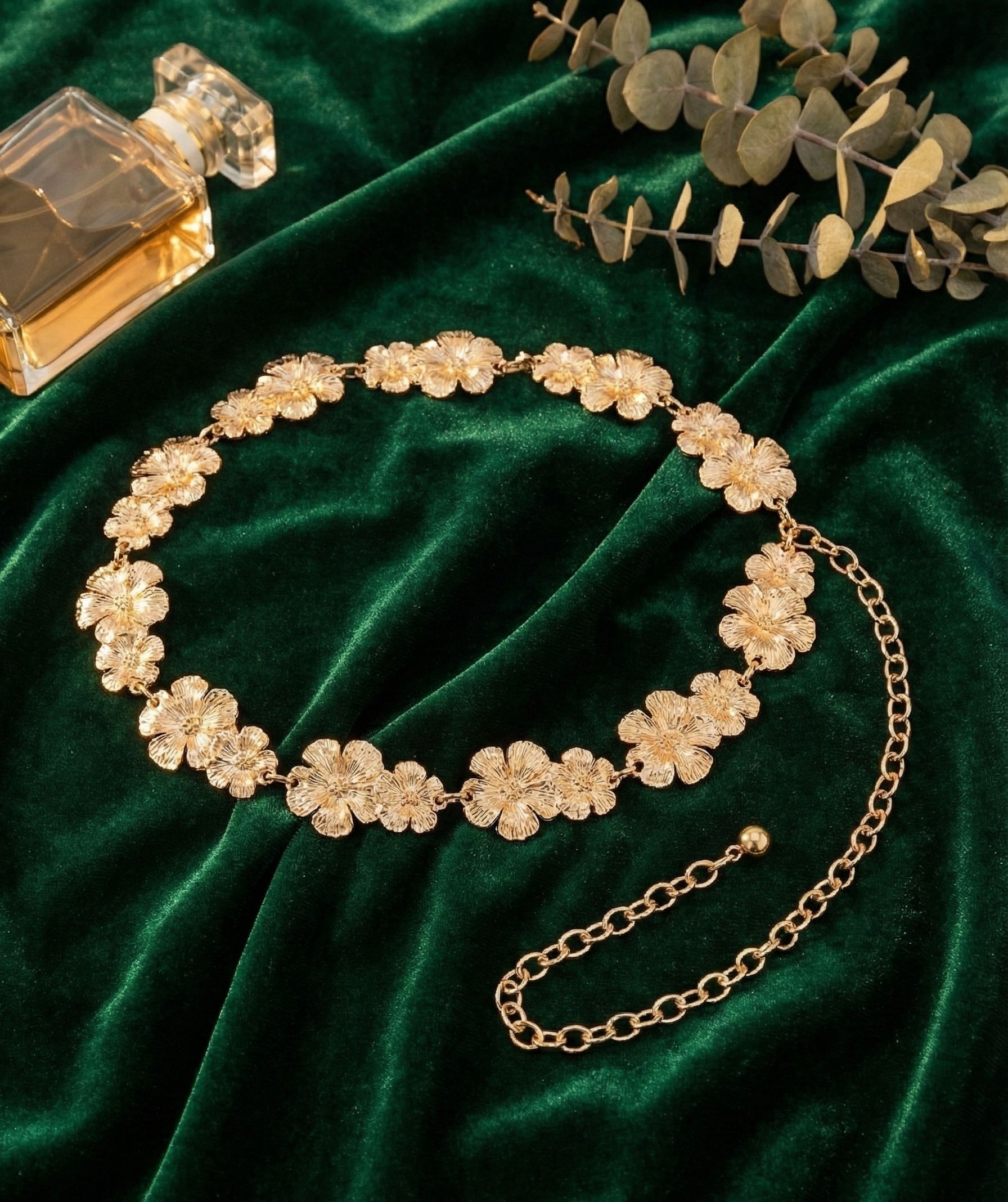 | Item Name | Luxury Gold Floral Motif Link Chain Belt |