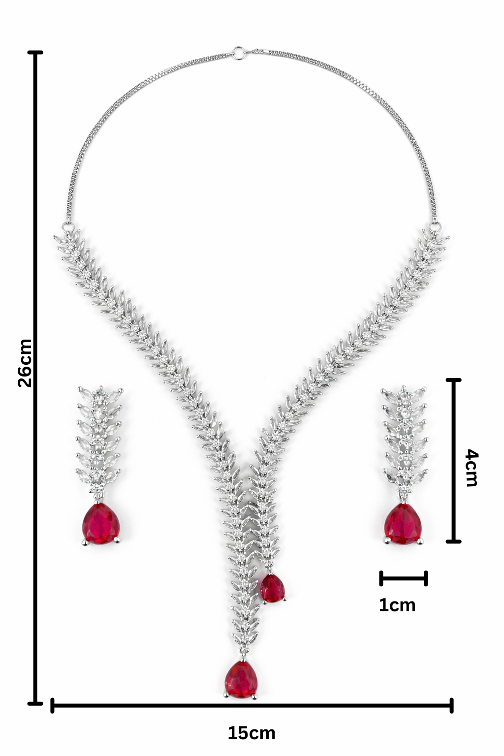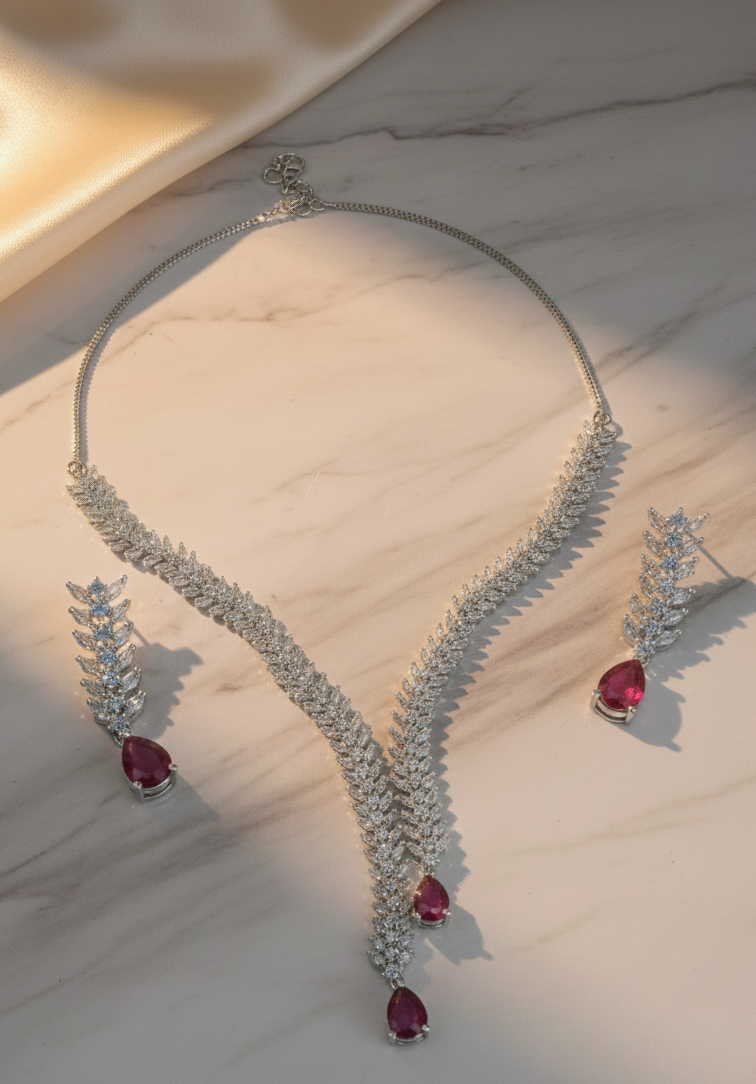 | Item Name | Luxury Ruby Red & American Diamond V-Shape Lariat Necklace Set |
