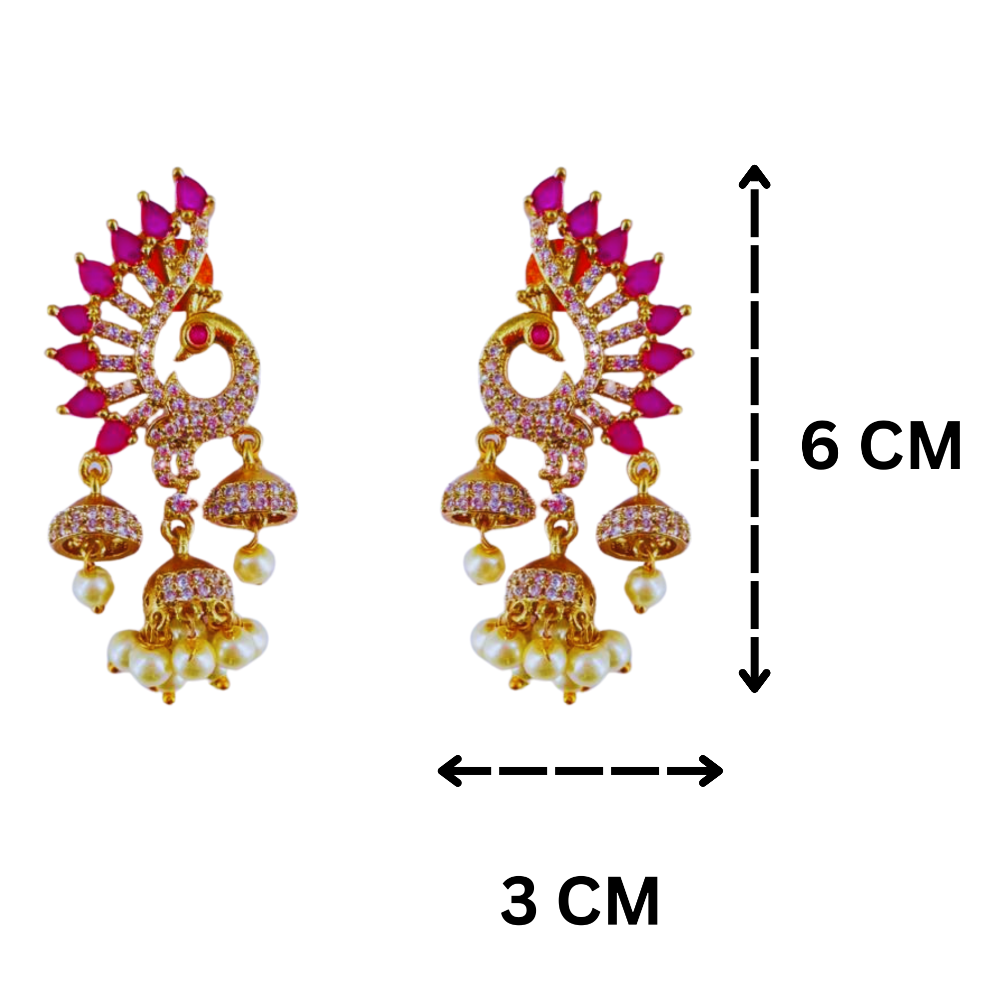 - Embellished with sparkling pink stones and delicate pearl danglers for an exquisite ethnic touch.