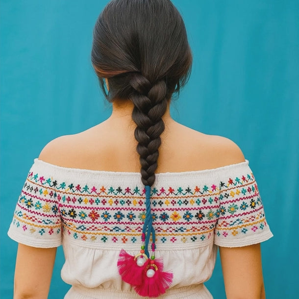 - Vibrant and colorful handmade Parandi perfect for braid styling.