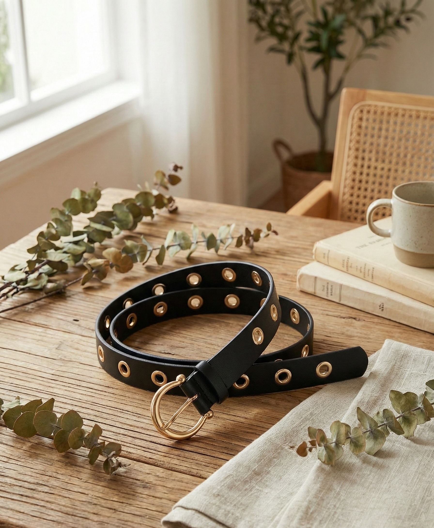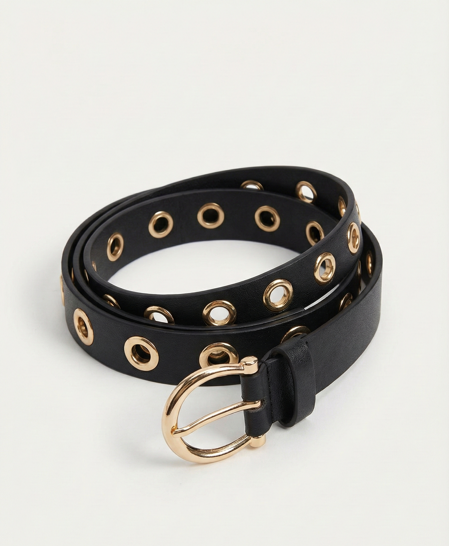 Item NameOMID Luxury Black Faux Leather Belt With Gold Round Grommets