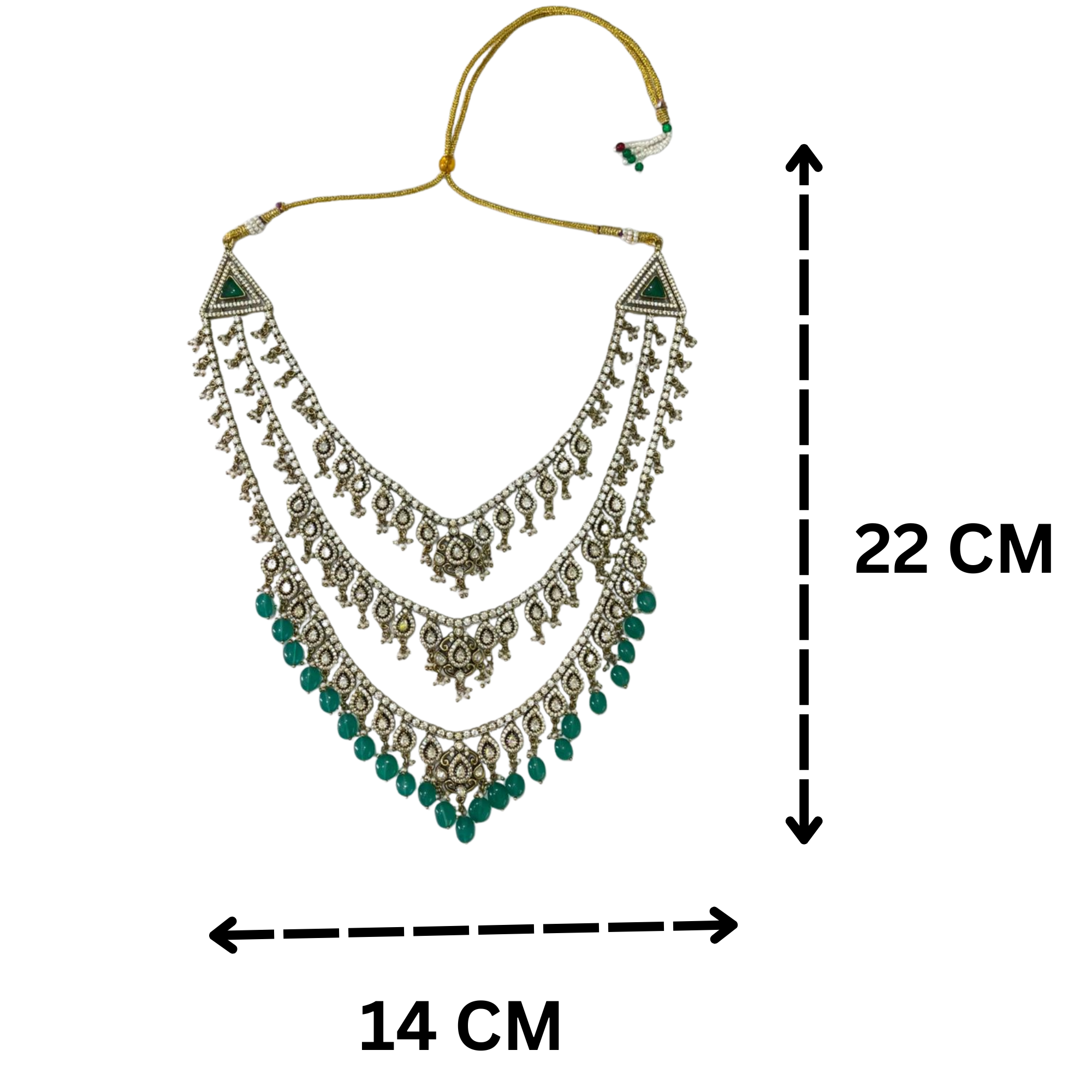 Item Name | Traditional Green Stone Kundan Necklace Set for Women – Multi-layered Ethnic Bridal Jewelry with Earrings – Indian Wedding, Party, Festival Wear |